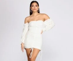 Windsor. Off Shoulder Puff Sleeve Mini Dress | Shop Top Deals