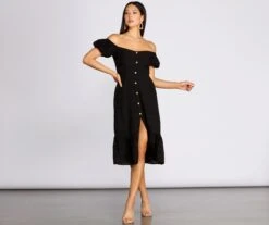 Windsor. Off The Shoulder Button Front Midi Dress | Shop Top Deals
