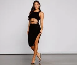 Windsor. Sultry Strappy Waist Sleeveless Midi Dress | Shop Top Deals