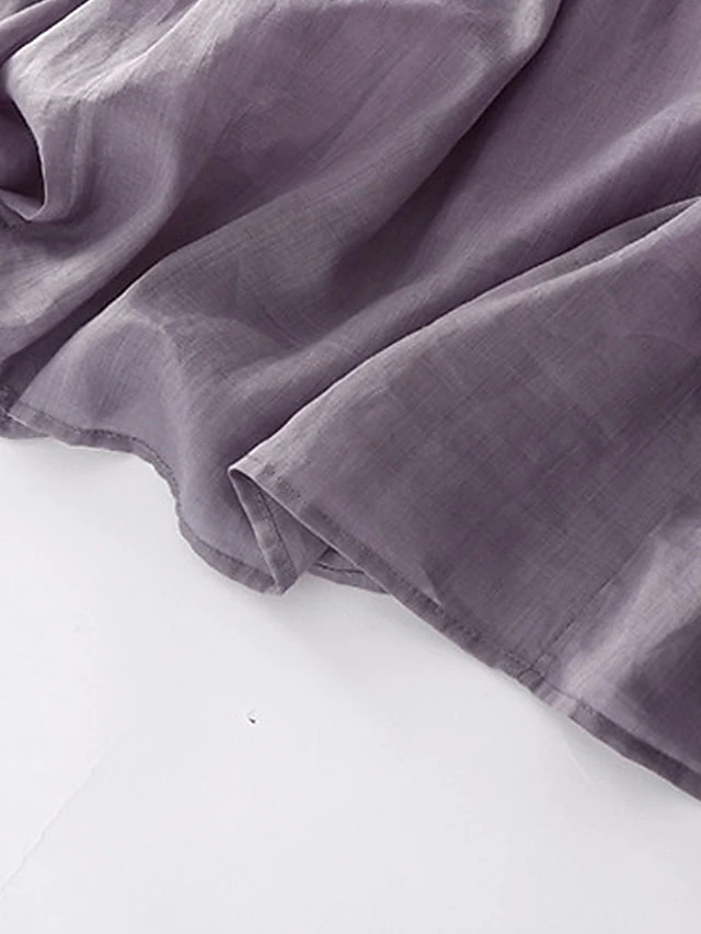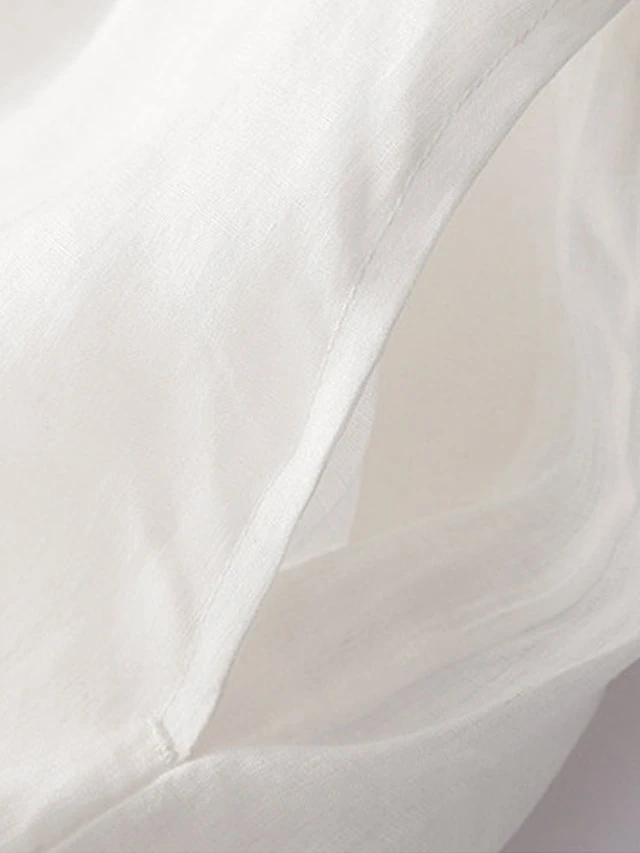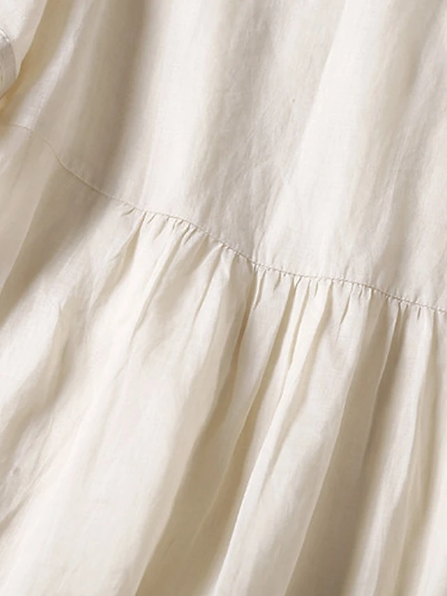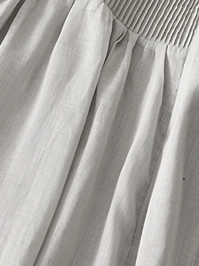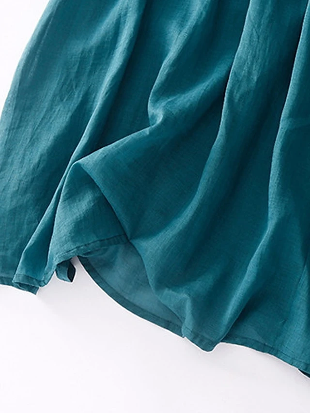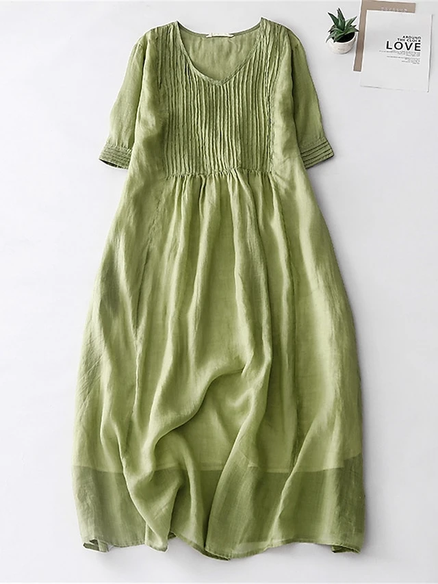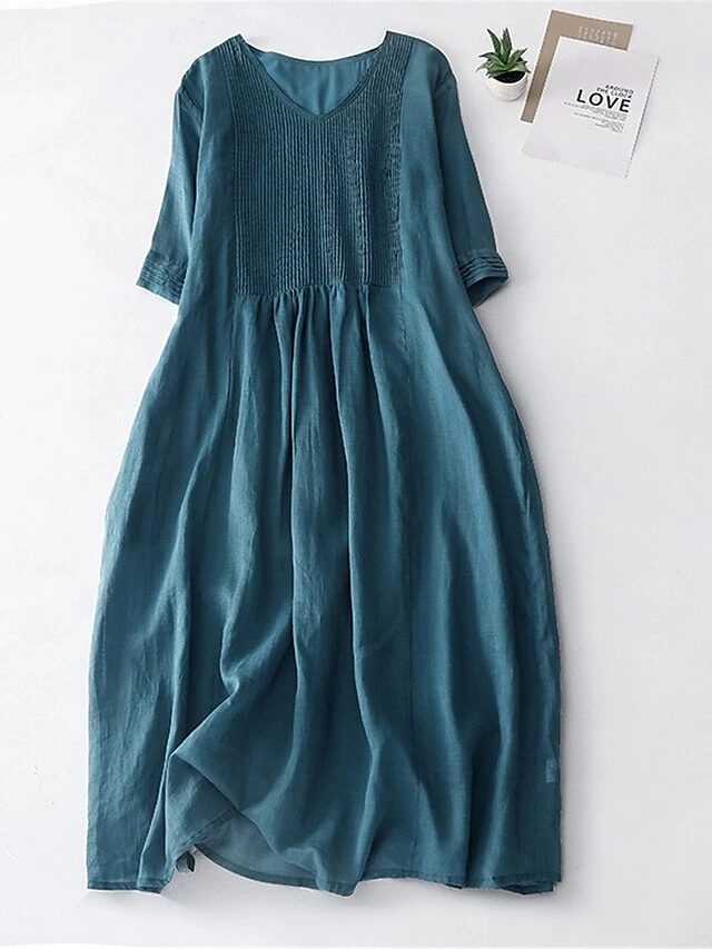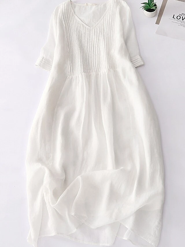 Women’s Casual Dress Cotton Linen Dress Midi Dress Linen Basic Classic Outdoor Daily Vacation V Neck Pocket Half Sleeve Fall Autumn 2023 Loose Fit White Navy Blue Purple Plain M L XL 2XL