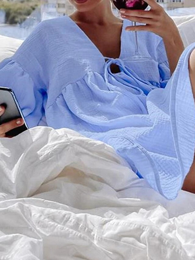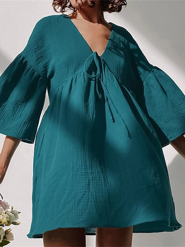 Women’s Casual Dress Cotton Linen Dress Mini Dress Cotton Daily Basic Outdoor Home Daily V Neck Ruched Button 3/4 Length Sleeve Fall Autumn 2023 Loose Fit Navy Blue Blue Purple Plain S M L