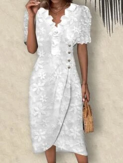 Women’s Casual Dress Cotton Linen Dress Shift Dress Midi Dress Cotton Blend Fashion Modern Outdoor Daily V Neck Lace Ruffle Short Sleeve Summer Spring 2023 Regular Fit White Floral S M L XL 2XL