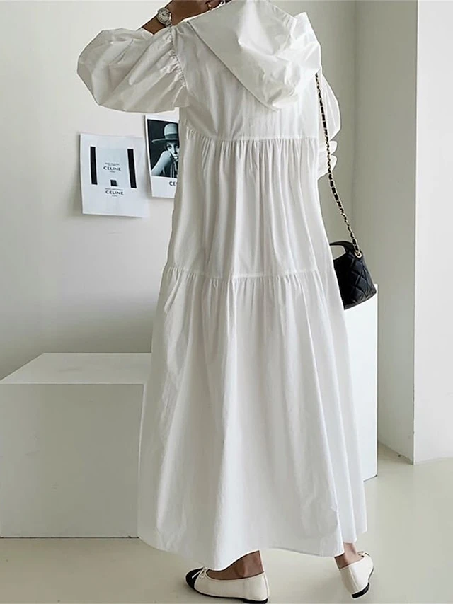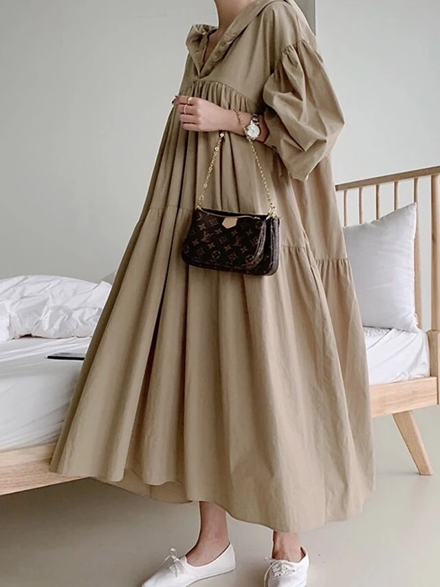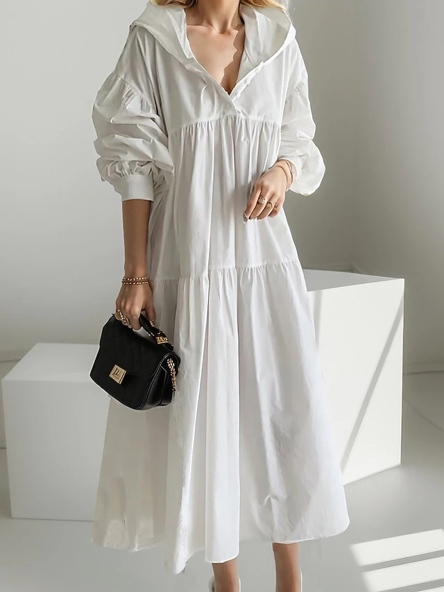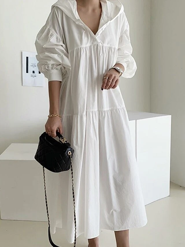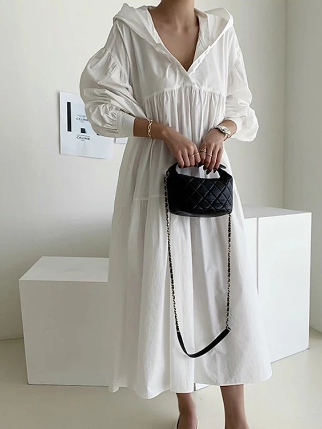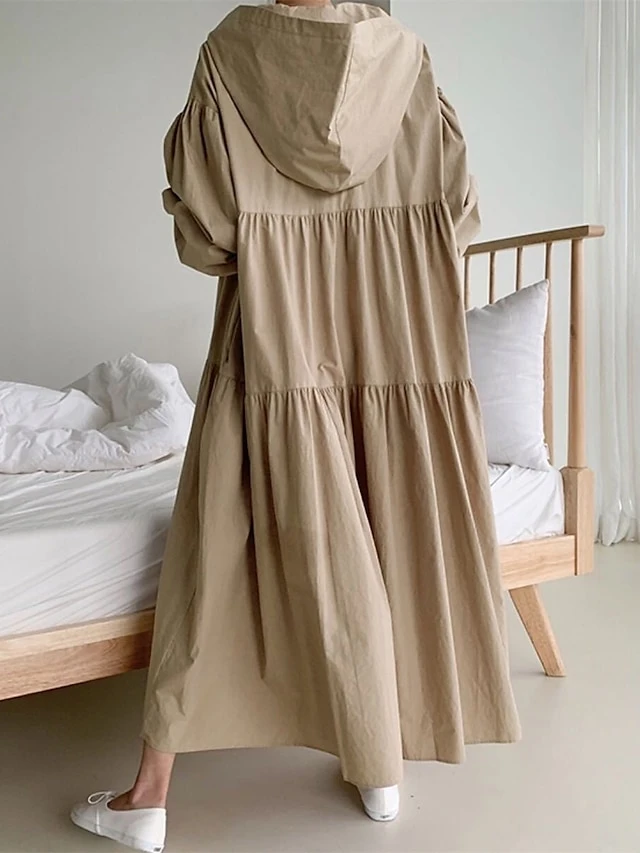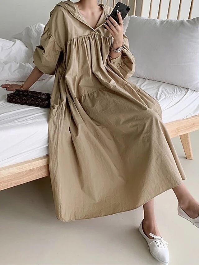 Women’s Casual Dress Cotton Linen Dress Swing Dress Maxi Long Dress Linen / Cotton Blend Fashion Basic Outdoor Daily Vacation Hooded Ruched Pocket Long Sleeve Fall Winter Autumn 2023 Loose Fit Black