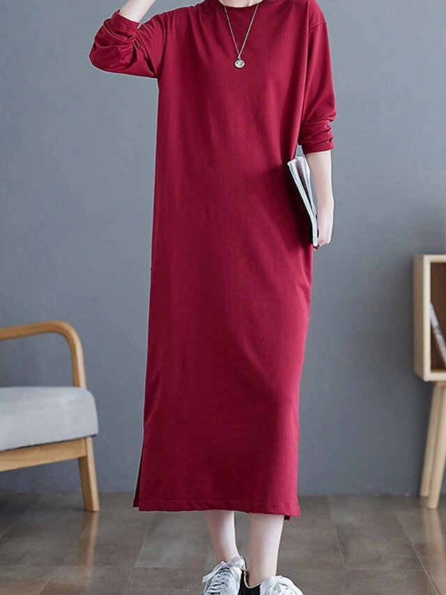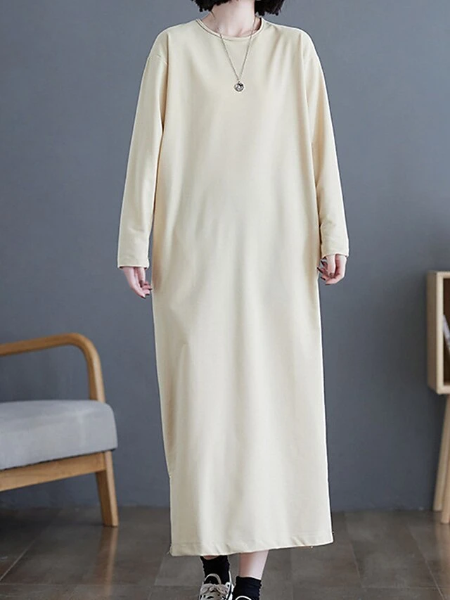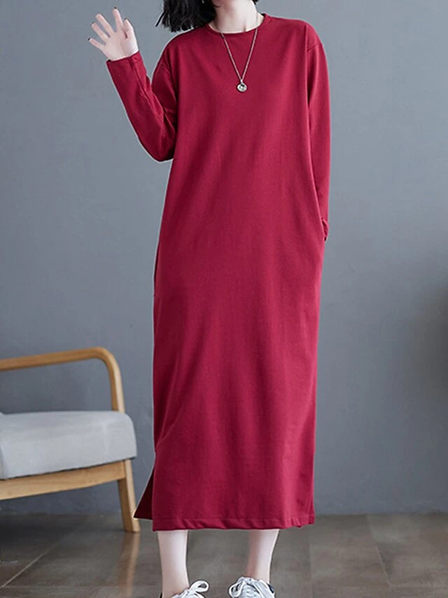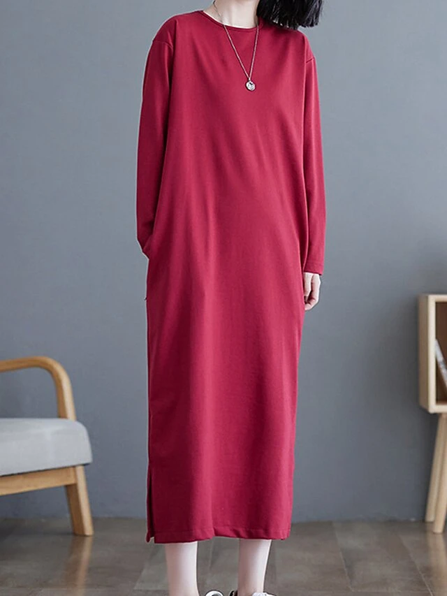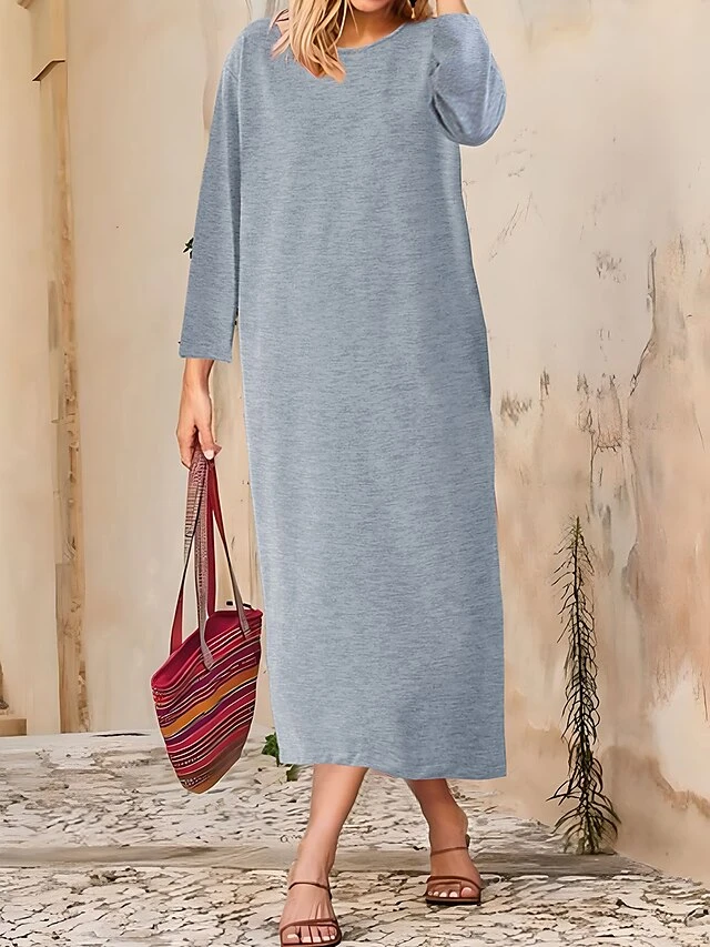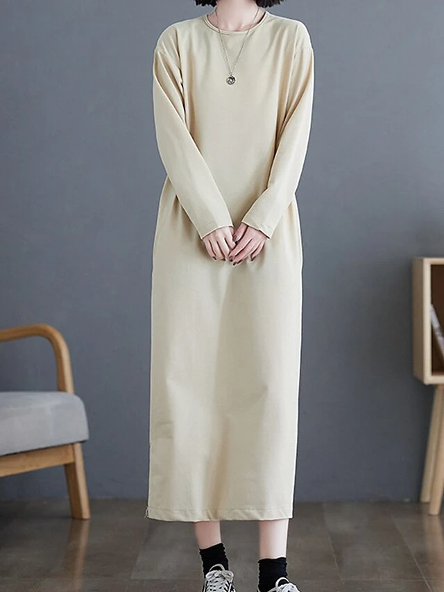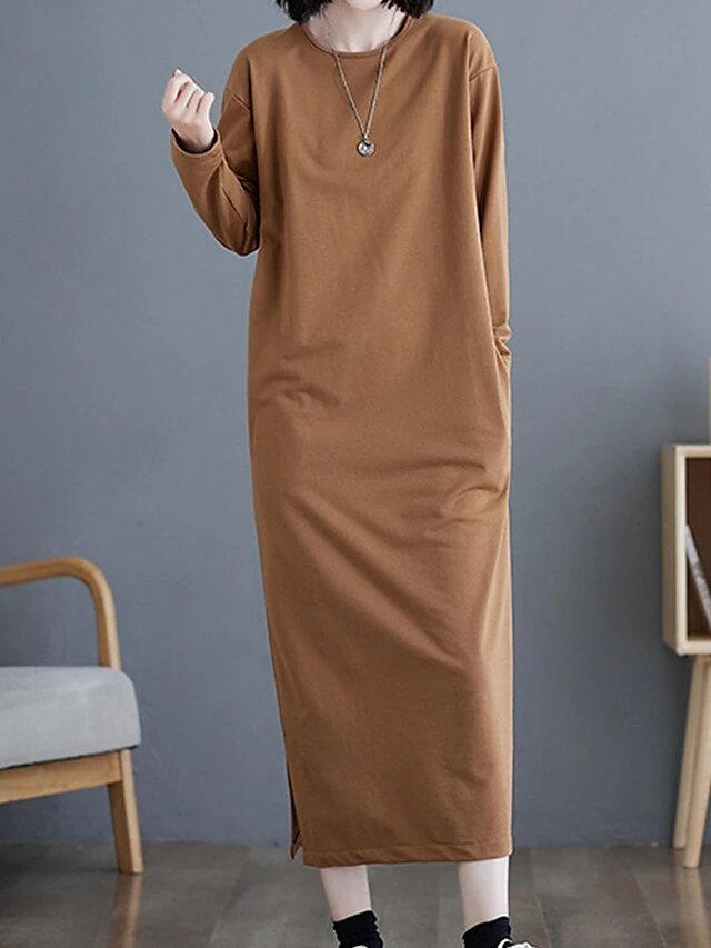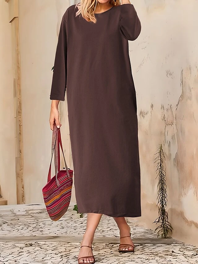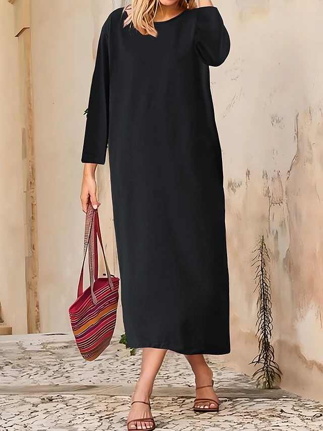 Women’s Casual Dress Cotton Linen Dress T Shirt Dress Tee Dress Midi Dress Polyester Basic Classic Outdoor Daily Vacation Crew Neck Pocket 3/4 Length Sleeve Fall Autumn 2023 Loose Fit ArmyGreen Black