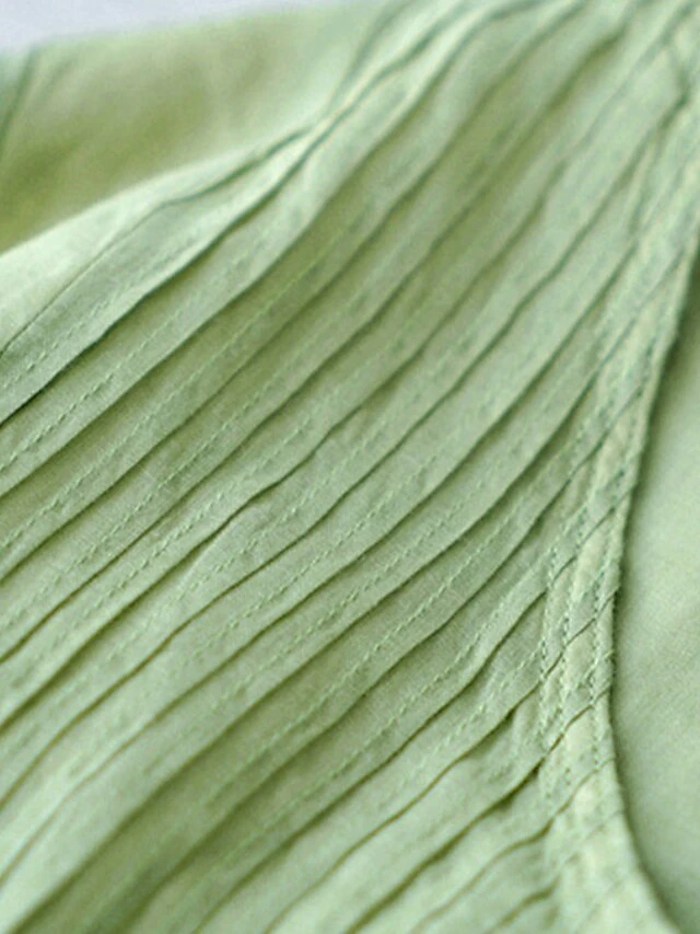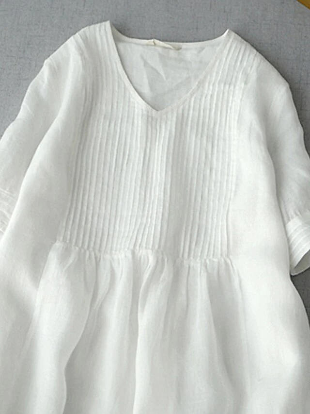 Women’s Casual Dress Cotton Linen Dress White Dress Midi Dress Cotton Blend Basic Casual Outdoor Vacation V Neck Ruched Half Sleeve Summer Spring Fall 2023 Loose Fit White Green Apricot Pure Color M
