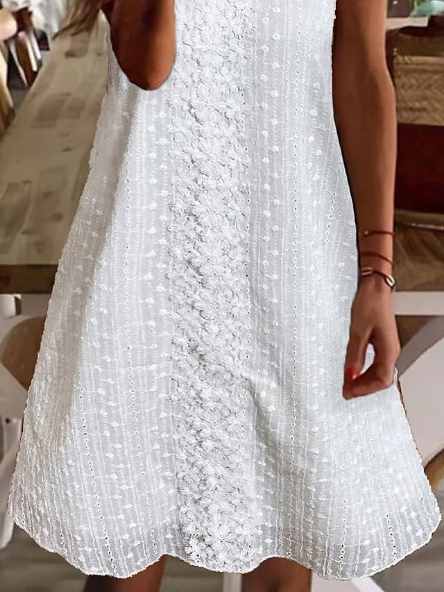 Women’s Casual Dress Cotton Linen Dress White Dress Midi Dress Cotton Blend Fashion Modern Outdoor Daily Holiday V Neck Lace Sleeveless Summer Spring 2023 Loose Fit White Plain S M L XL 2XL