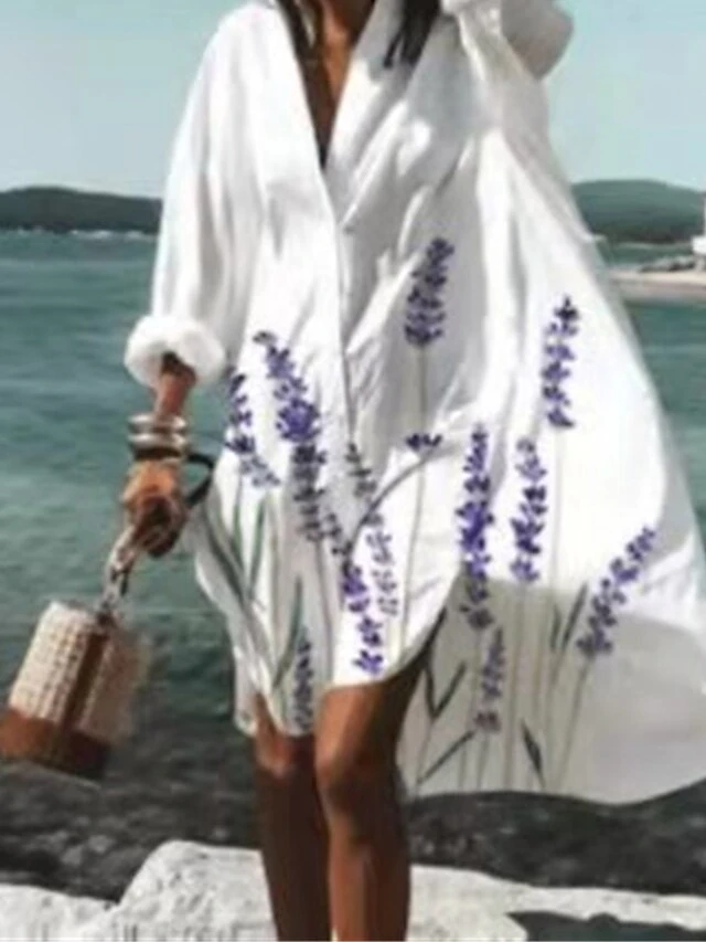 Women’s Casual Dress Print Dress Loose Dress Floral Button Print Shirt Collar Midi Dress Active Fashion Outdoor Home Long Sleeve Loose Fit Light Green Purple Orange Summer Spring S M L XL XXL