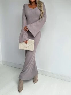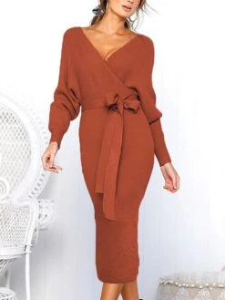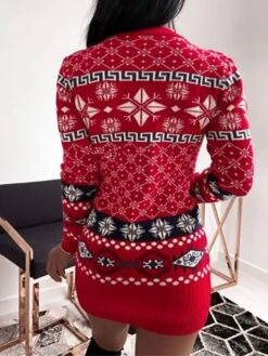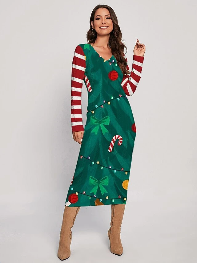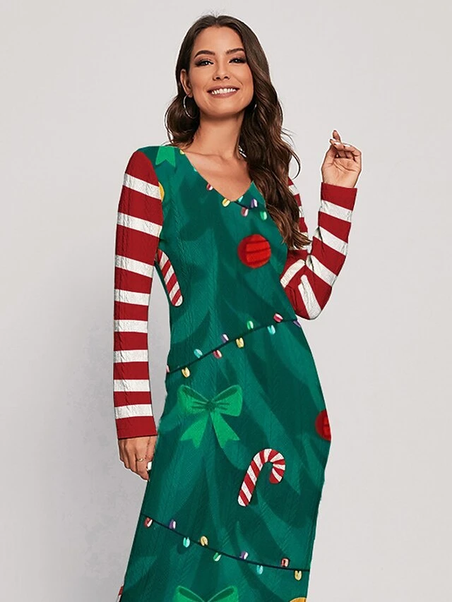 Women’s Christmas Dress Sweater Dress Jumper Dress Midi Dress Ugly Stripe Outdoor Christmas Daily Holiday V Neck Long Sleeve 2023 Regular Fit Wine Green S M L XL XXL 3XL