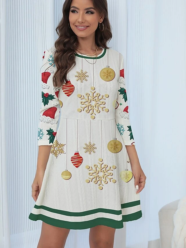 Women’s Christmas Dress Sweater Dress Jumper Dress Mini Dress Warm Snowflake Outdoor Christmas Daily Holiday Crew Neck Long Sleeve 2023 Regular Fit White S M L XL XXL 3XL