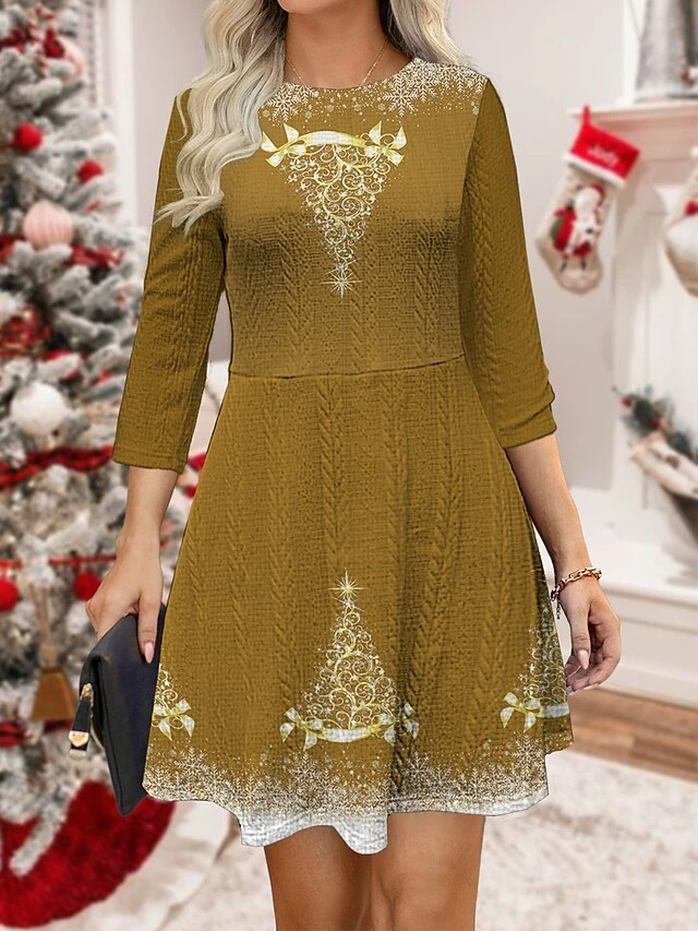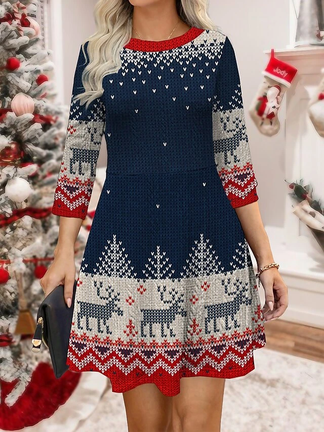 Women‘s Christmas Sweater Dress Jumper Dress Winter Dress Warm Christmas Tree Deer Outdoor Christmas Daily Holiday Crew Neck Long Sleeve 2023 Regular Fit Royal Blue Blue Gold S M L XL
