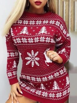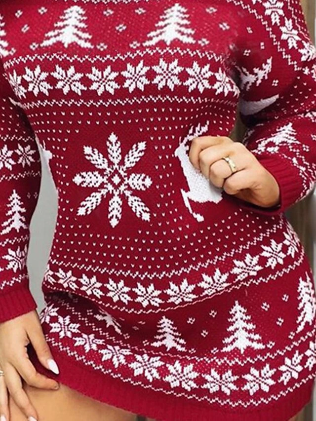 Women‘s Christmas Sweater Dress Jumper Dress Winter Dress Warm Geometric Tree Print Outdoor Christmas Casual Daily Crew Neck Long Sleeve 2023 Regular Fit Red S M L XL