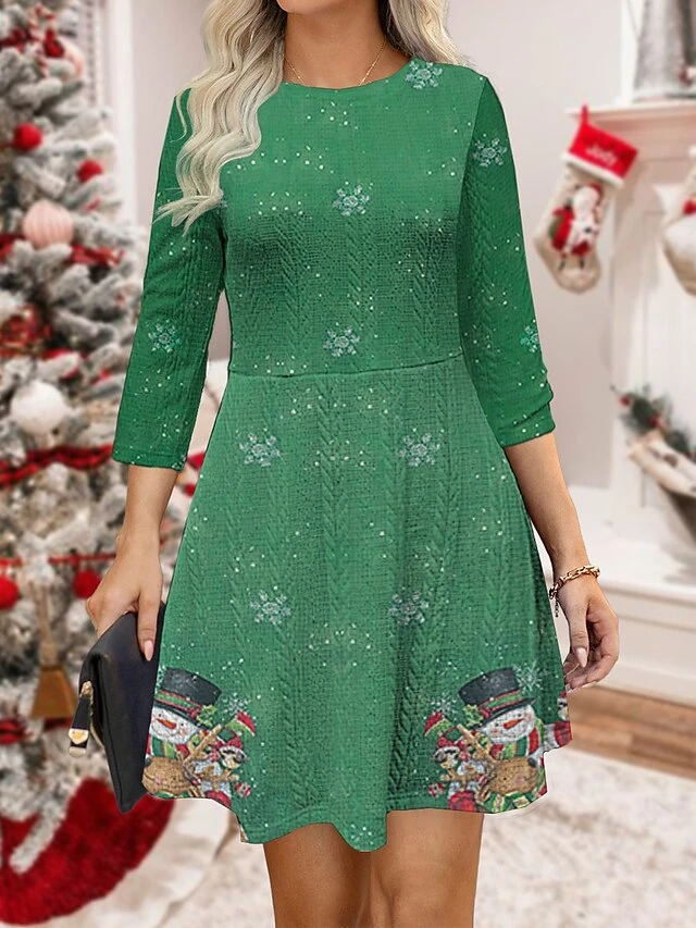 Women‘s Christmas Sweater Dress Jumper Dress Winter Dress Warm Snowman Christmas Tree Outdoor Christmas Daily Holiday Crew Neck Long Sleeve 2023 Regular Fit Wine Blue Green S M L XL
