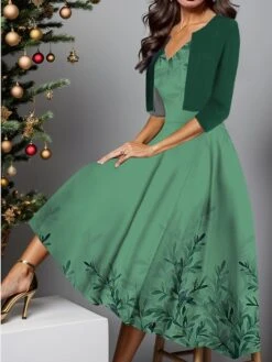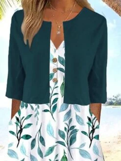 Women‘s Dress Set Two Piece Dress A Line Dress Midi Dress Blue Half Sleeve Floral Print Summer Spring V Neck Casual 2023 S M L XL XXL 3XL