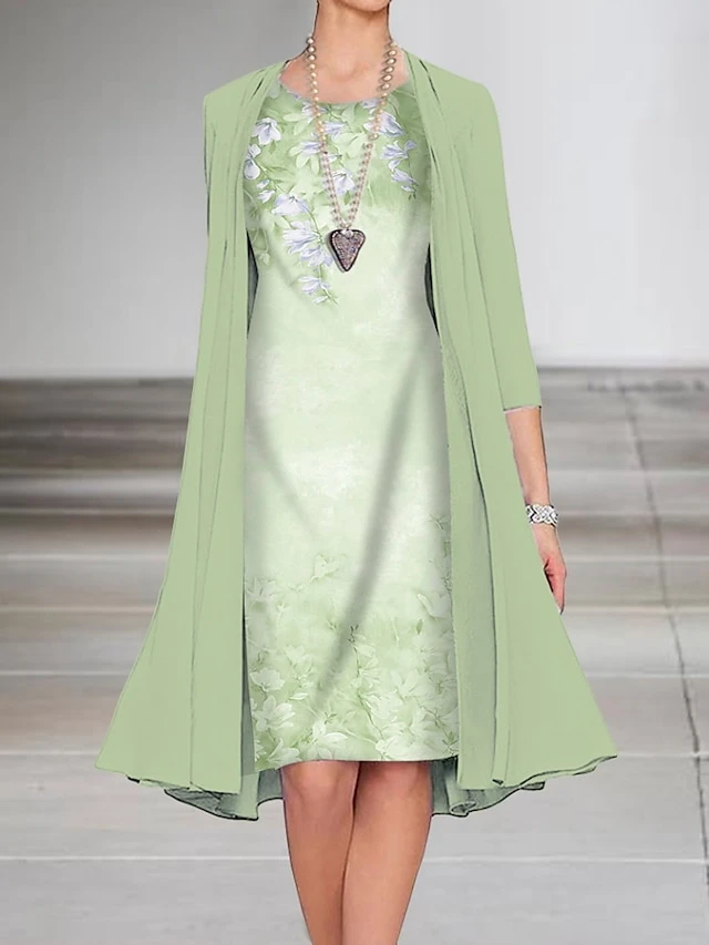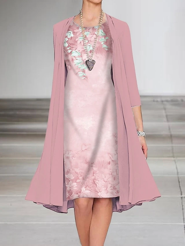 Women’s Dress Set Two Piece Dress A Line Dress Midi Dress Pink Blue Green 3/4 Length Sleeve Floral Ruched Fall Winter Autumn Crew Neck Elegant 2023 S M L XL XXL 3XL