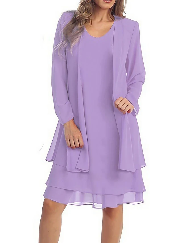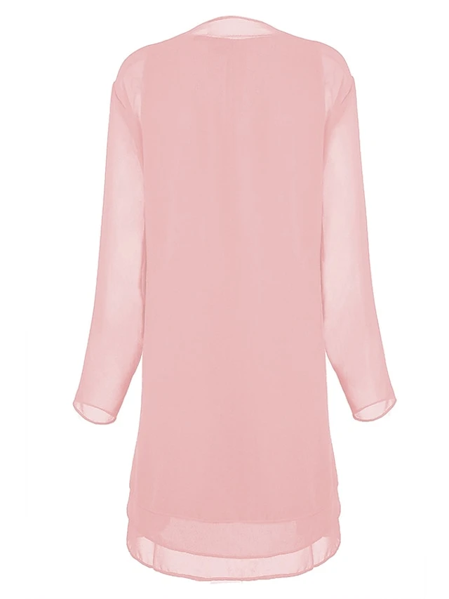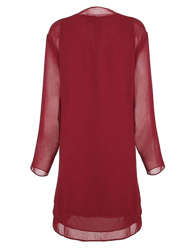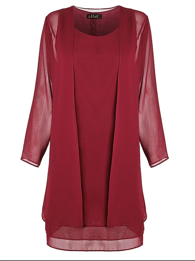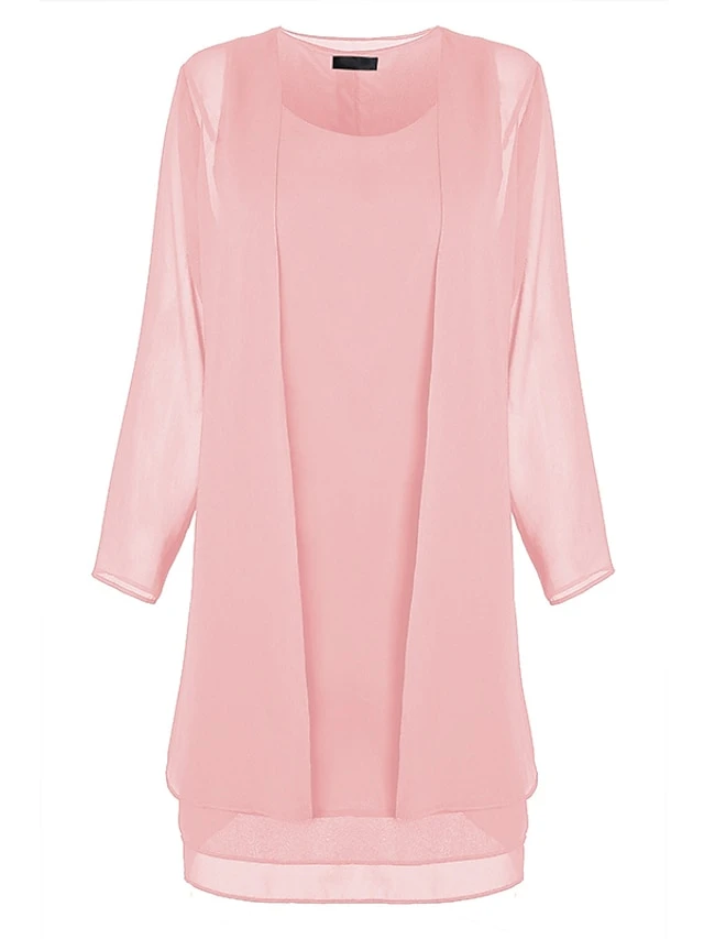 Women’s Dress Set Two Piece Dress Church Dress Midi Dress Light Pink Black Wine Long Sleeve Pure Color Chiffon Summer Spring Crew Neck Stylish Winter Dress Fall Dress 2023 XL XXL 3XL 4XL 5XL