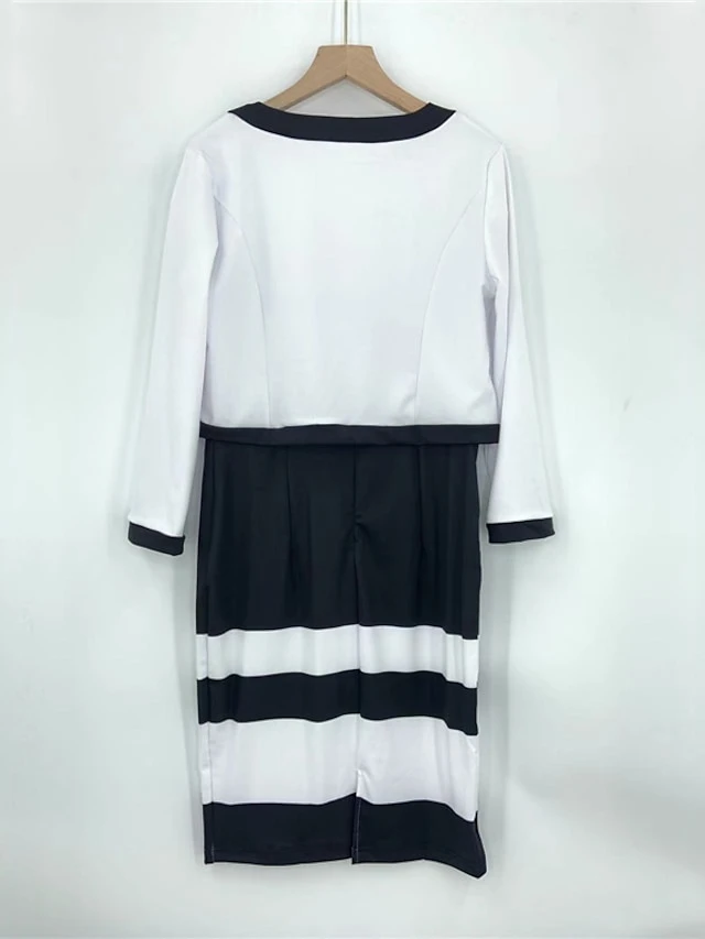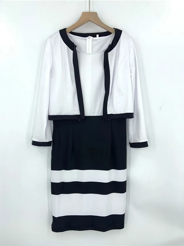 Women’s Dress Set Two Piece Dress Sheath Dress Knee Length Dress Black Long Sleeve Striped Print Fall Winter Autumn Crew Neck Stylish Winter Dress Fall Dress 2023 S M L XL XXL 3XL 4XL 5XL