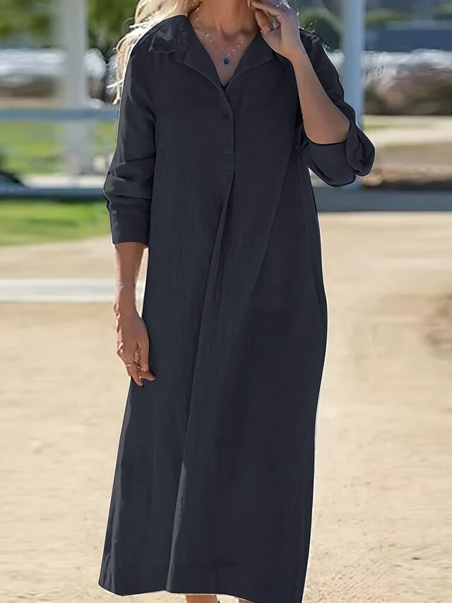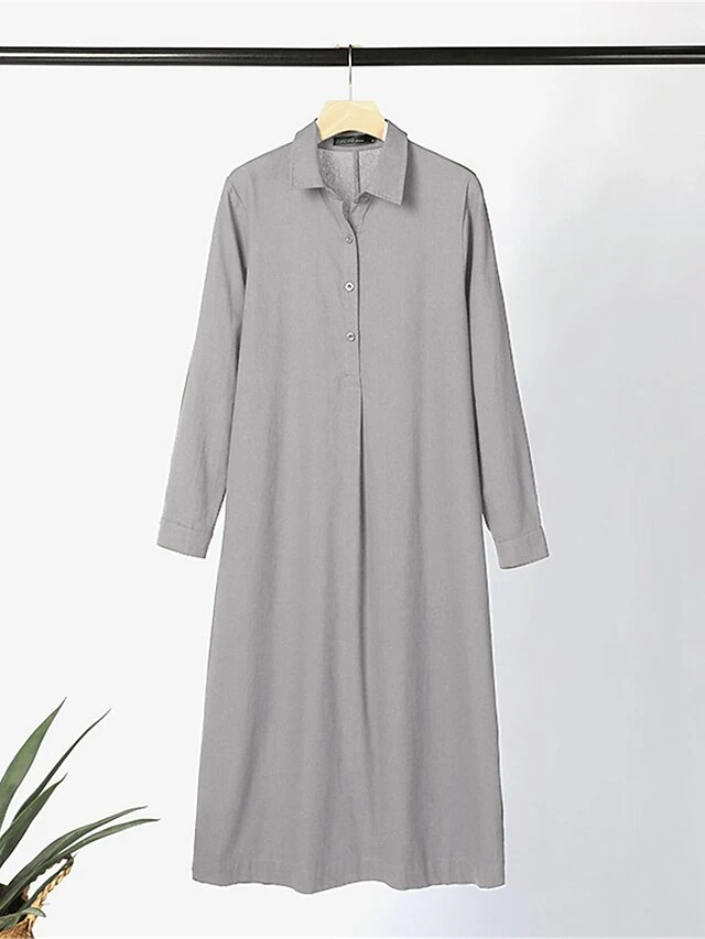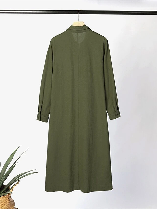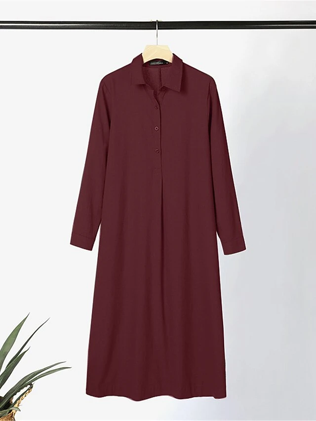 Women’s Shirt Dress Casual Dress Cotton Linen Dress Maxi Long Dress Cotton Basic Classic Outdoor Daily Vacation Shirt Collar Button Split Long Sleeve Summer Spring Fall 2023 Loose Fit Wine Navy Blue