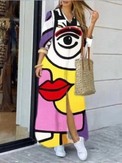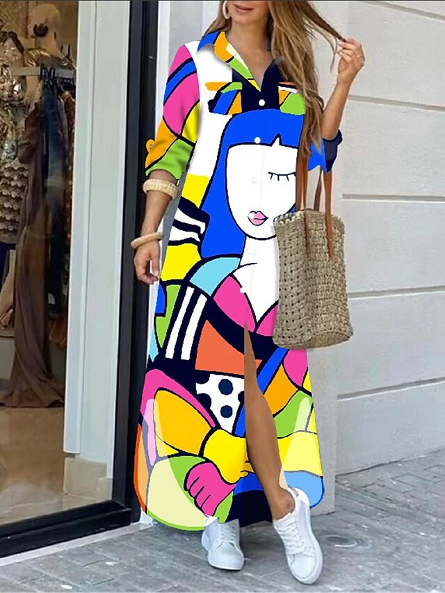 Women’s Shirt Dress Casual Dress Maxi Long Dress Outdoor Daily Polyester Fashion Hot Shirt Collar Button Print Long Sleeve Summer Spring Fall 2023 Regular Fit ArmyGreen Black Pink Geometric Abstract