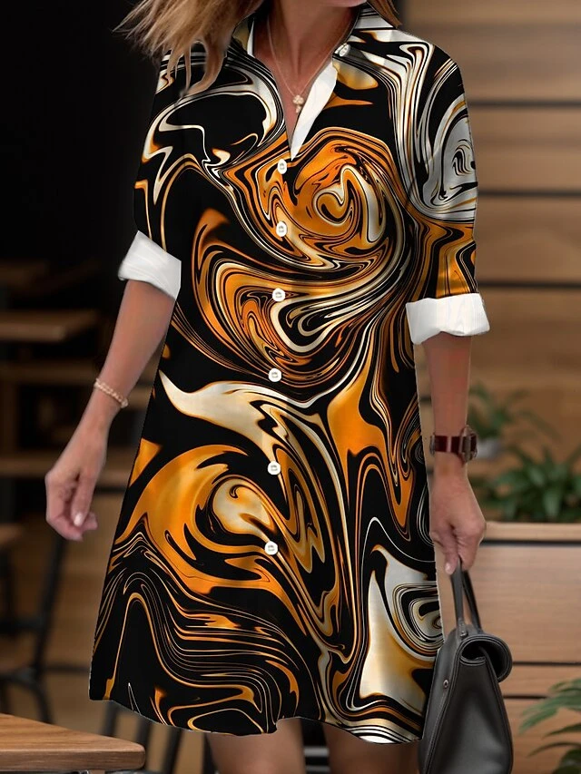 Women’s Shirt Dress Casual Dress Midi Dress Outdoor Daily Date Polyester Fashion Modern Shirt Collar Button Pocket Long Sleeve Fall Winter 2023 Loose Fit Navy Blue Blue Purple Ombre S M L XL 2XL