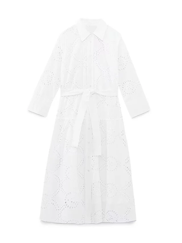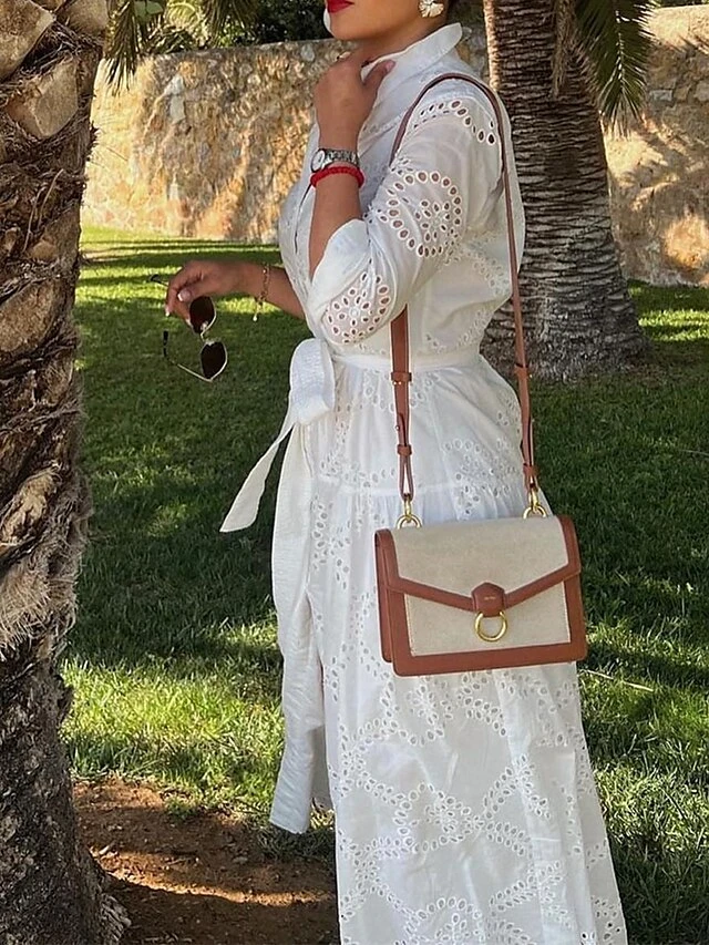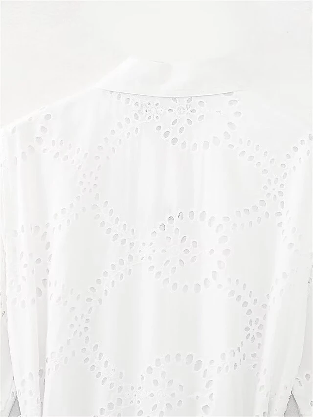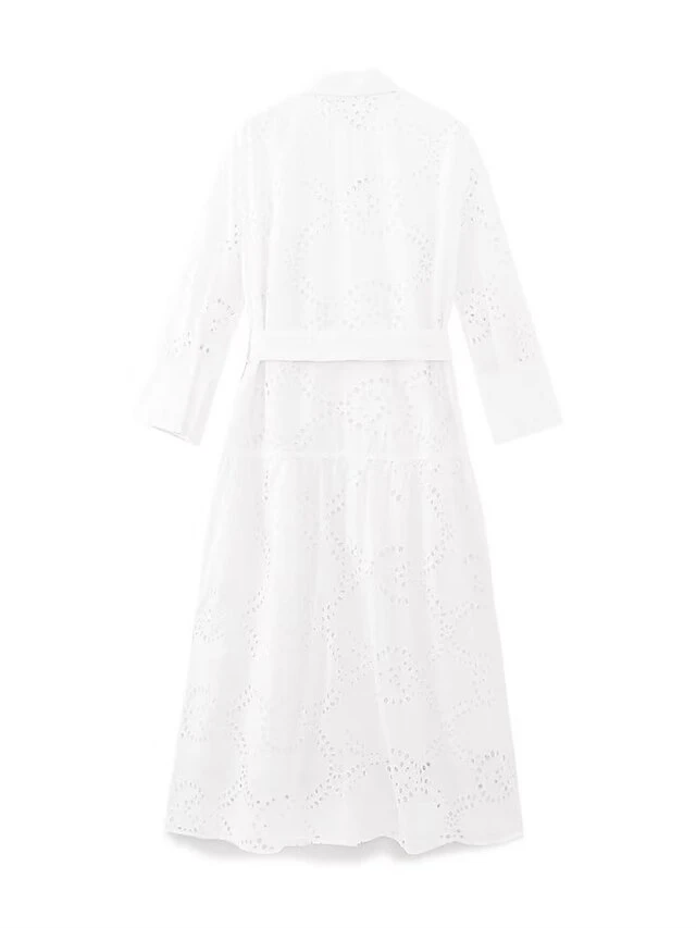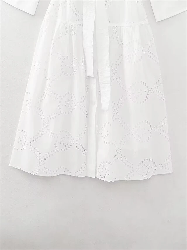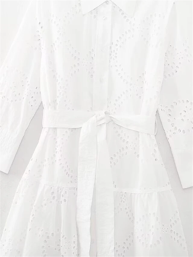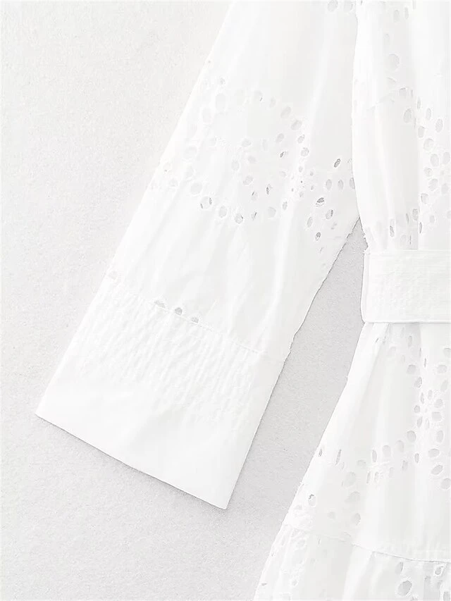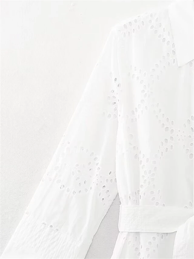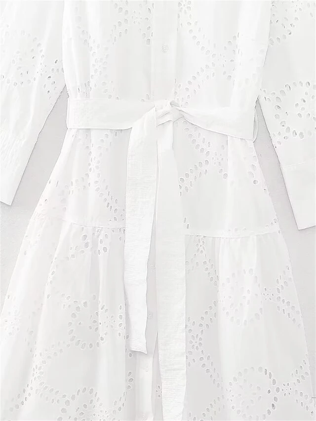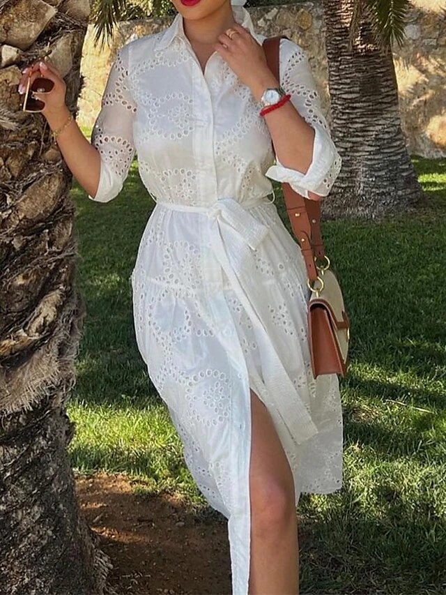 Women’s Shirt Dress Casual Dress Midi Dress Outdoor Daily Vacation Cotton Fashion Modern Shirt Collar Lace Up Button Long Sleeve Fall Winter 2023 Regular Fit White Pure Color XS S M L