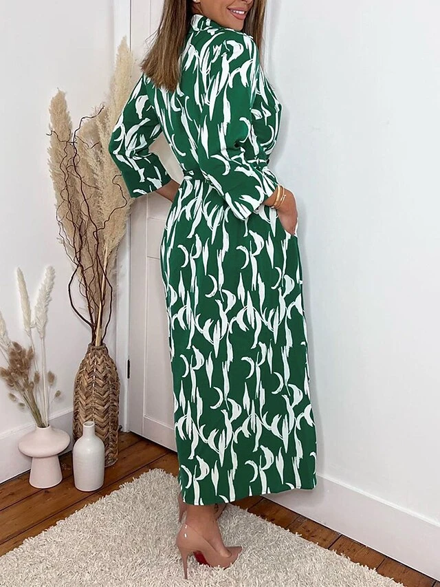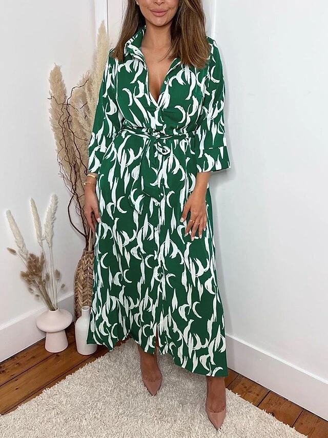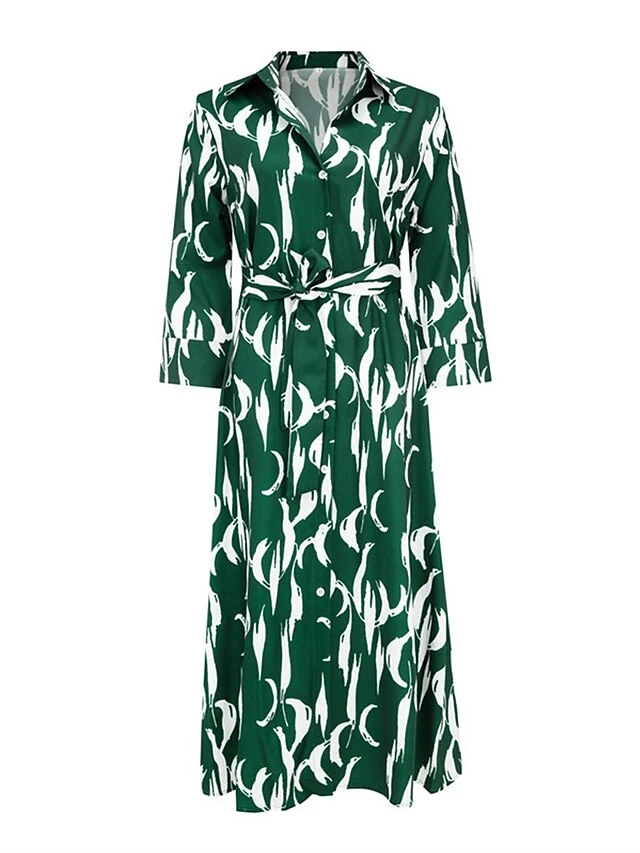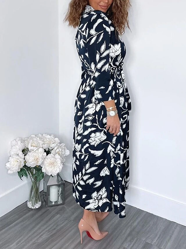 Women’s Shirt Dress Casual Dress Midi Dress Outdoor Daily Vacation Polyester Fashion Modern Shirt Collar Button Pocket 3/4 Length Sleeve Summer Spring Fall 2023 Regular Fit Navy Blue Green Leaf Floral