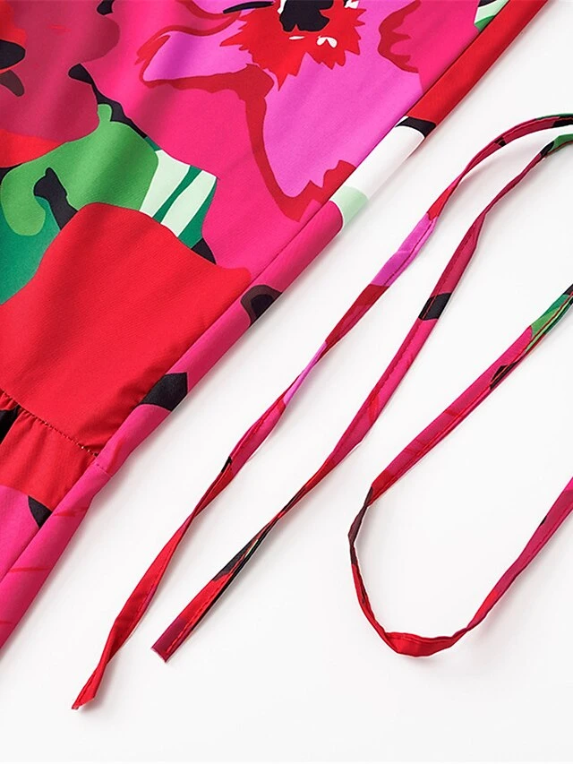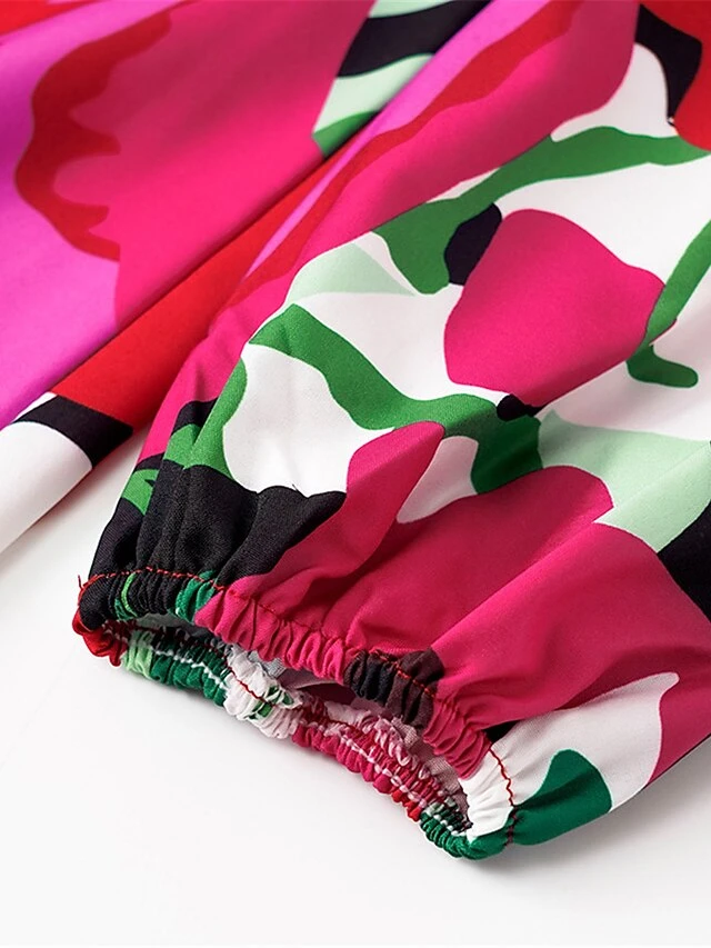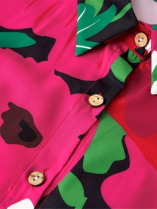 Women’s Shirt Dress Casual Dress Midi Dress Outdoor Daily Vacation Polyester Fashion Modern Shirt Collar Button Split Long Sleeve Summer Spring Fall 2023 Loose Fit Red Floral S M L XL 2XL