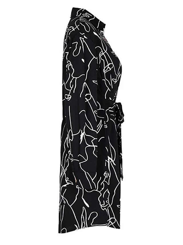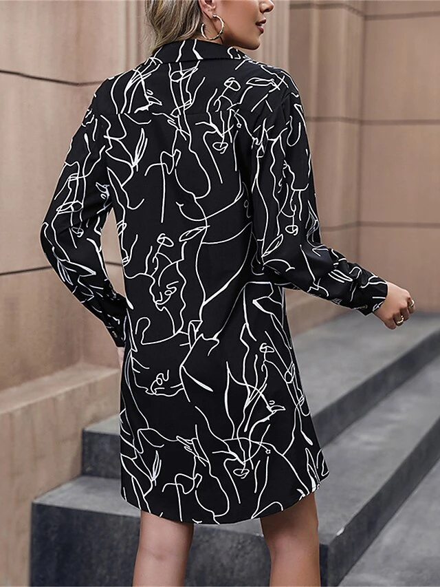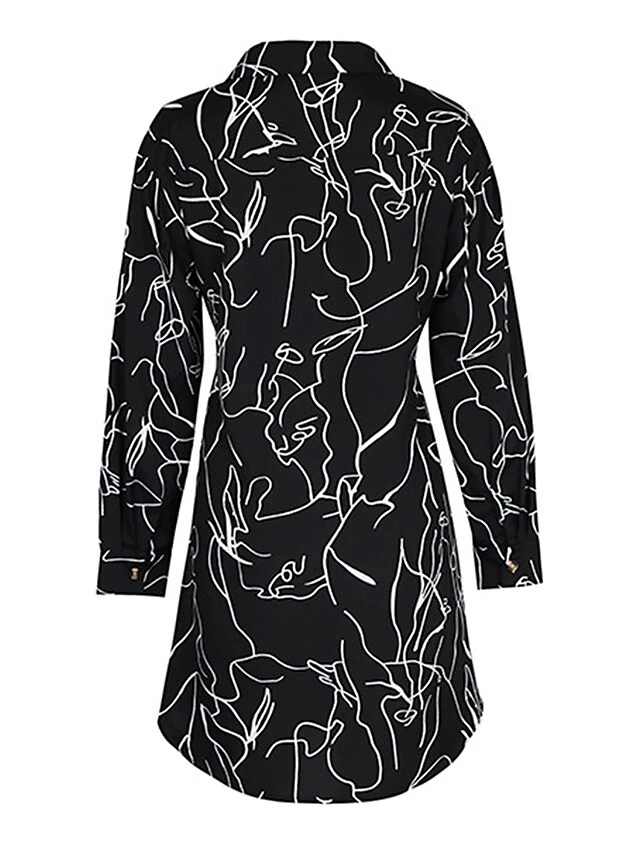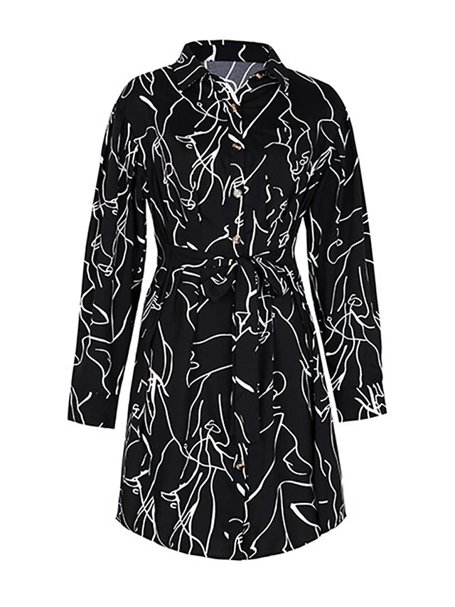 Women’s Shirt Dress Casual Dress Mini Dress Outdoor Daily Date Polyester Fashion Modern Shirt Collar Lace Up Button Long Sleeve Fall Winter 2023 Regular Fit Black Geometric S M L XL