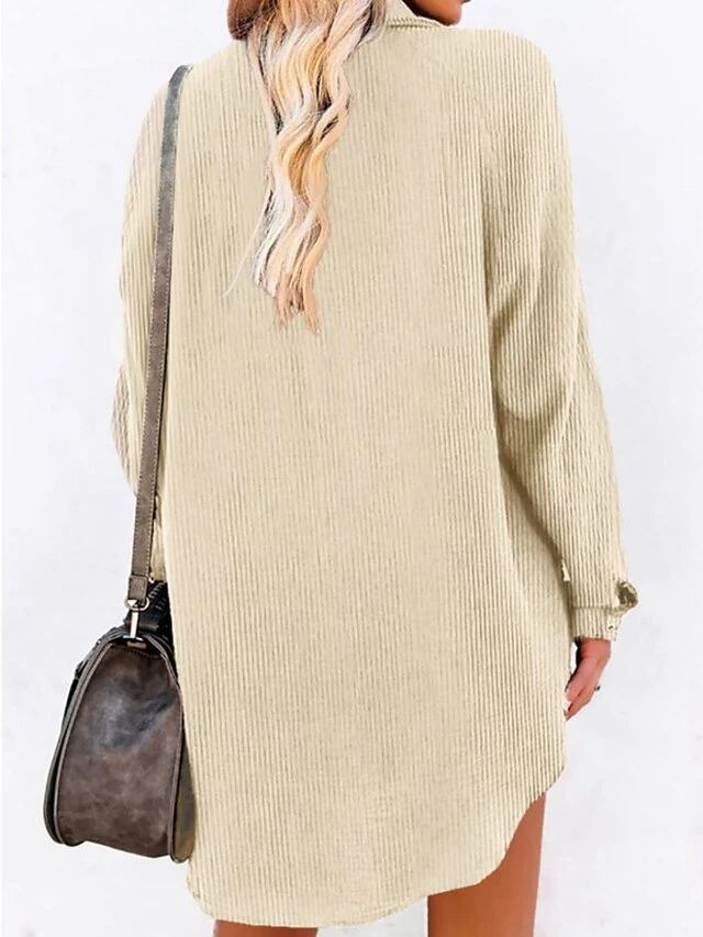 Women’s Shirt Dress Casual Dress Mini Dress Outdoor Daily Polyester Basic Classic Shirt Collar Button Long Sleeve Spring Fall Winter 2023 Loose Fit Apricot Pure Color S M L XL