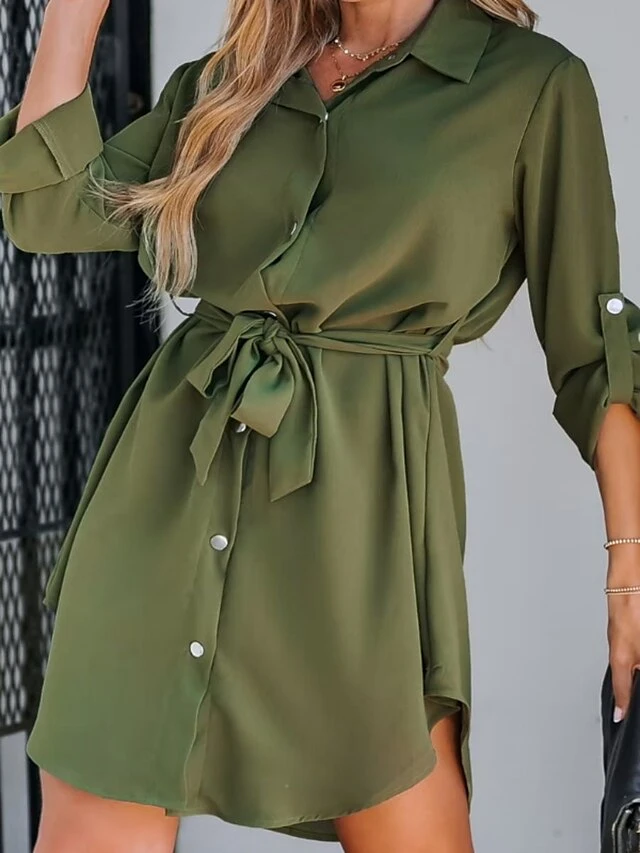 Women’s Shirt Dress Casual Dress Mini Dress Outdoor Daily Polyester Basic Classic Shirt Collar Lace Up Button Long Sleeve Spring Fall Winter 2023 Loose Fit Green Pure Color S M L XL