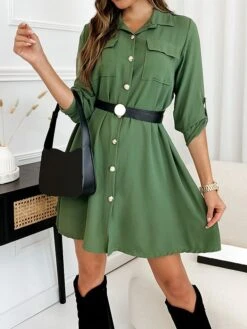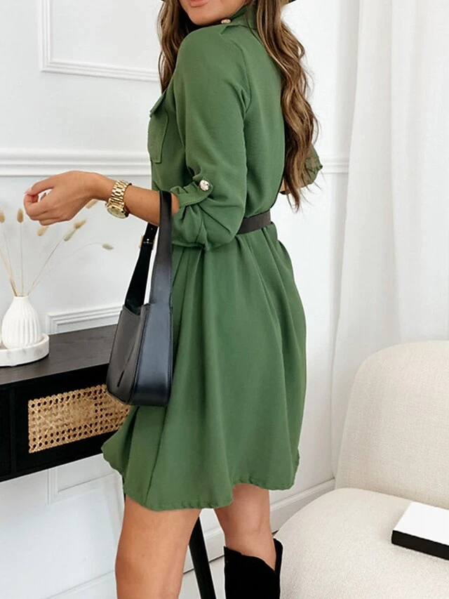 Women’s Shirt Dress Casual Dress Mini Dress Outdoor Daily Vacation Cotton Fashion Modern Shirt Collar Button Pocket Long Sleeve Fall Winter 2023 Regular Fit Black Brown Green Pure Color XS S M L XL