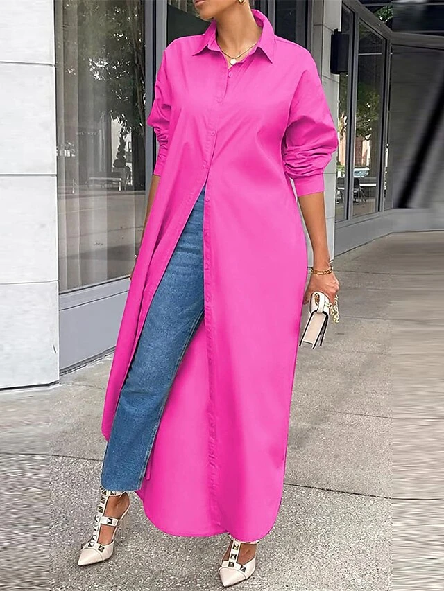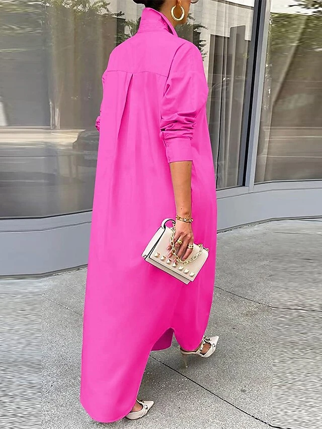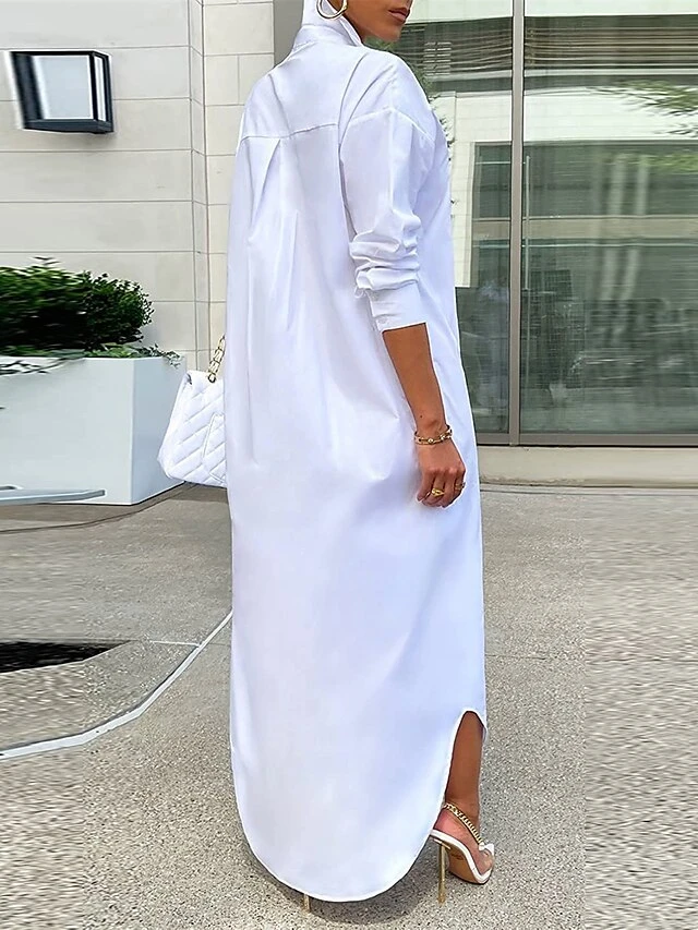 Women’s Shirt Dress Casual Dress Shift Dress Maxi Long Dress Outdoor Daily Vacation Polyester Fashion Modern Shirt Collar Button Split Long Sleeve Summer Spring Fall 2023 Loose Fit White Blue Green