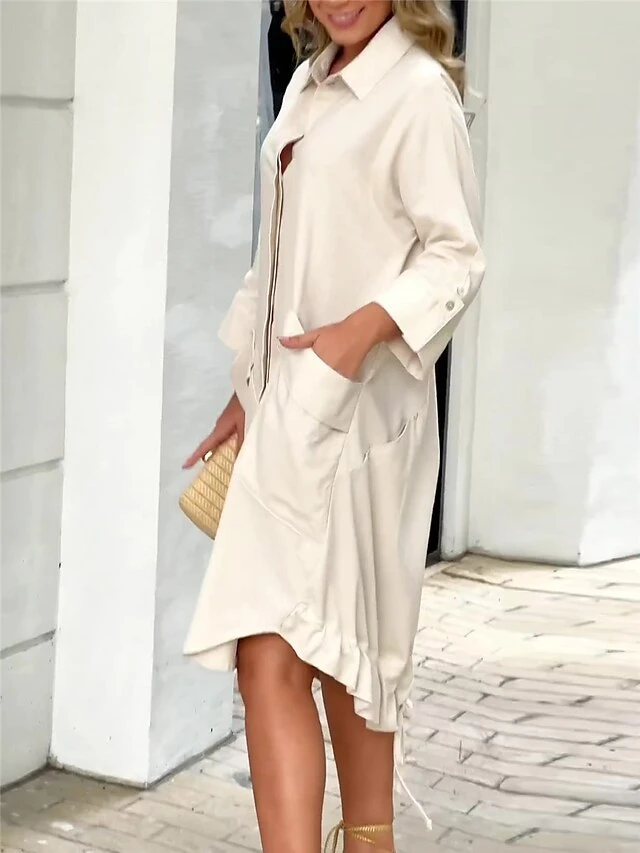 Women’s Shirt Dress Casual Dress Shift Dress Midi Dress Outdoor Office Business Polyester Basic Modern Shirt Collar Button Pocket 3/4 Length Sleeve Summer Spring Fall 2023 Loose Fit White Plain S M L