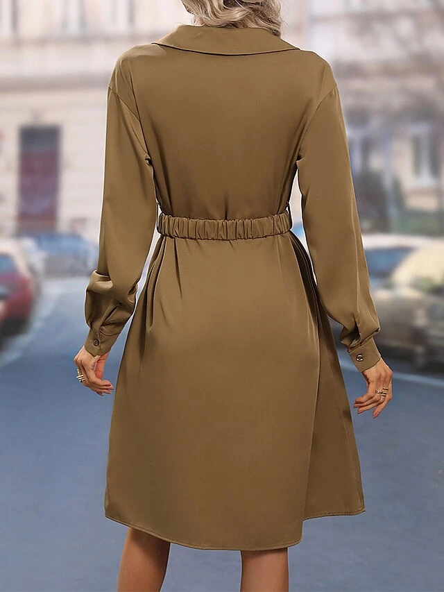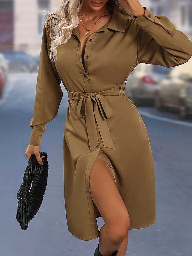 Women’s Shirt Dress Casual Dress Shift Dress Mini Dress Outdoor Daily Date Polyester Basic Classic Shirt Collar Button Tie Belt Long Sleeve Spring Fall Winter 2023 Loose Fit Khaki Pure Color S M L XL