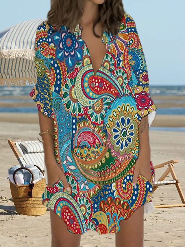 Women’s Shirt Dress Casual Dress Shift Dress Mini Dress Outdoor Daily Vacation Polyester Fashion Casual Stand Collar Button Pocket Long Sleeve Summer Spring Fall 2023 Regular Fit Yellow Red Floral S