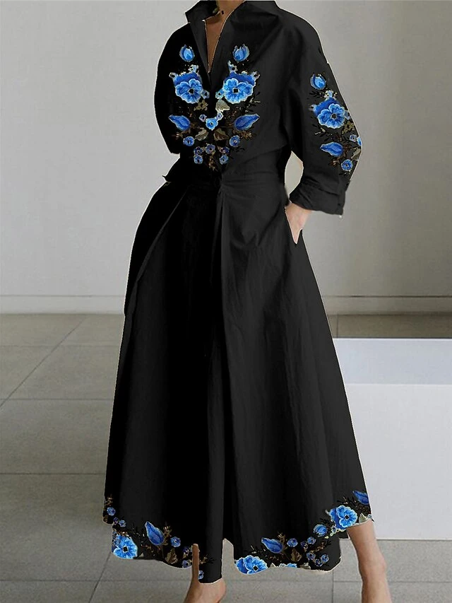 Women’s Shirt Dress Casual Dress Swing Dress Maxi Long Dress Outdoor Daily Vacation Polyester Fashion Modern Shirt Collar Button Pocket Long Sleeve Summer Spring Fall 2023 Loose Fit Black Yellow