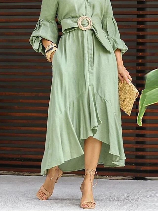 Women’s Shirt Dress Casual Dress Swing Dress Maxi Long Dress Outdoor Office Daily Polyester Fashion Elegant Shirt Collar Ruffle Button 3/4 Length Sleeve Summer Spring Fall 2023 Loose Fit Blue Green