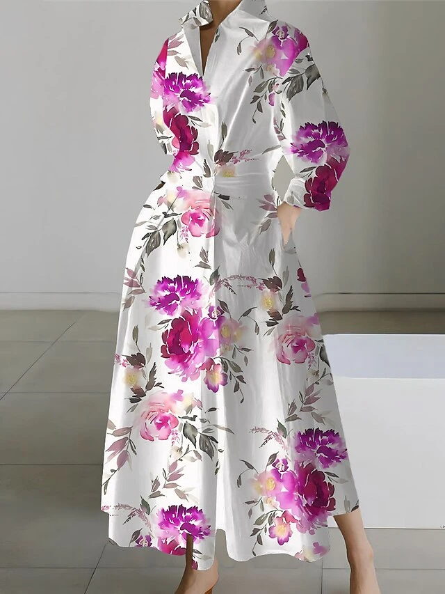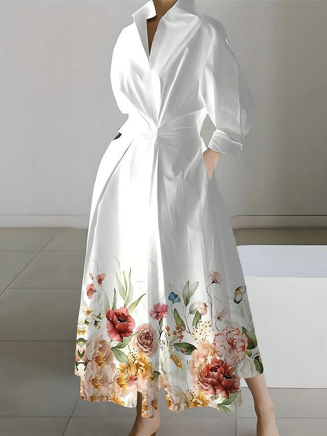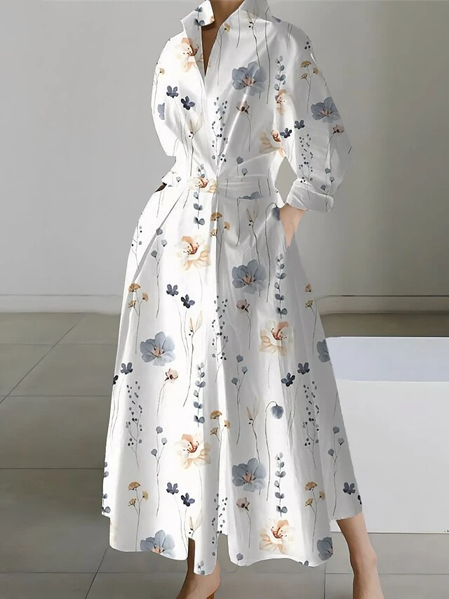 Women’s Shirt Dress Casual Dress Swing Dress Maxi Long Dress Outdoor Office Daily Polyester Fashion Modern Shirt Collar Button Pocket Long Sleeve Spring Fall Winter 2023 Loose Fit Black White Yellow