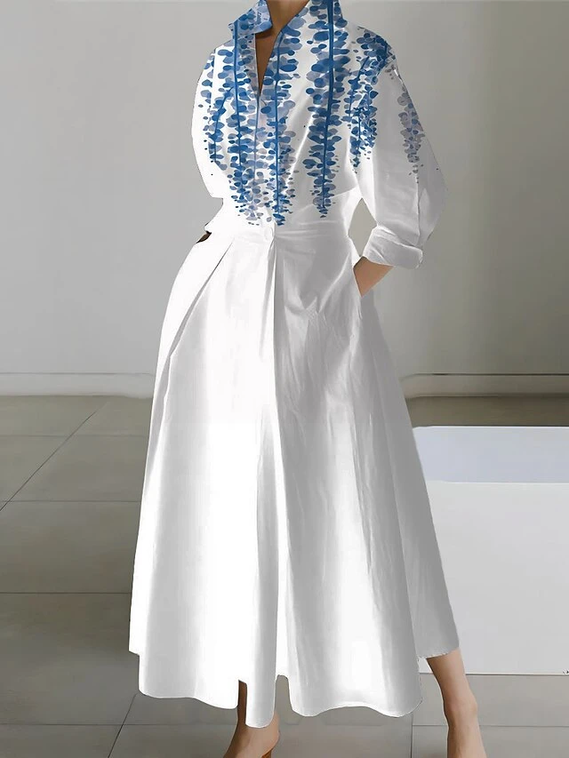 Women’s Shirt Dress Casual Dress Swing Dress Maxi Long Dress Outdoor Office Daily Polyester Fashion Modern Shirt Collar Button Pocket Long Sleeve Spring Fall Winter 2023 Loose Fit White Yellow Dark