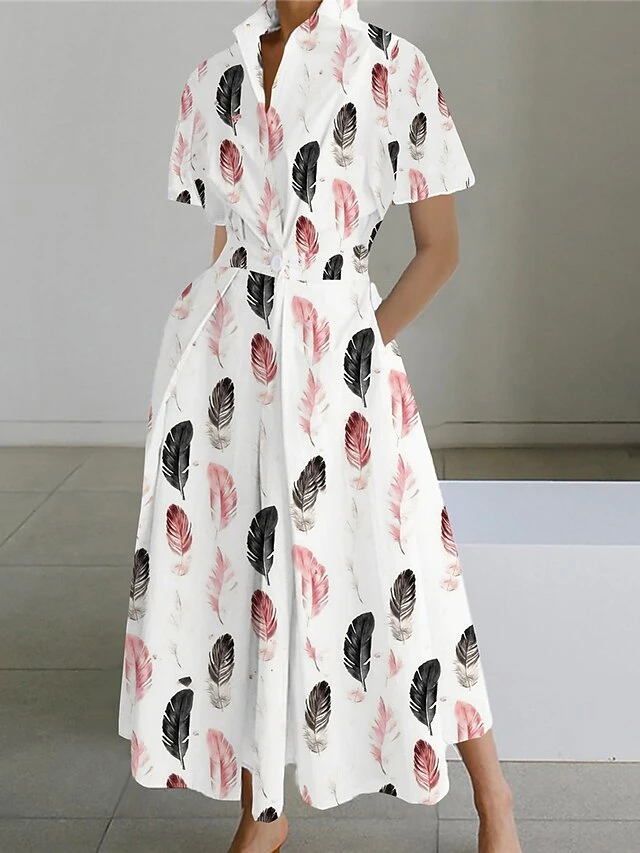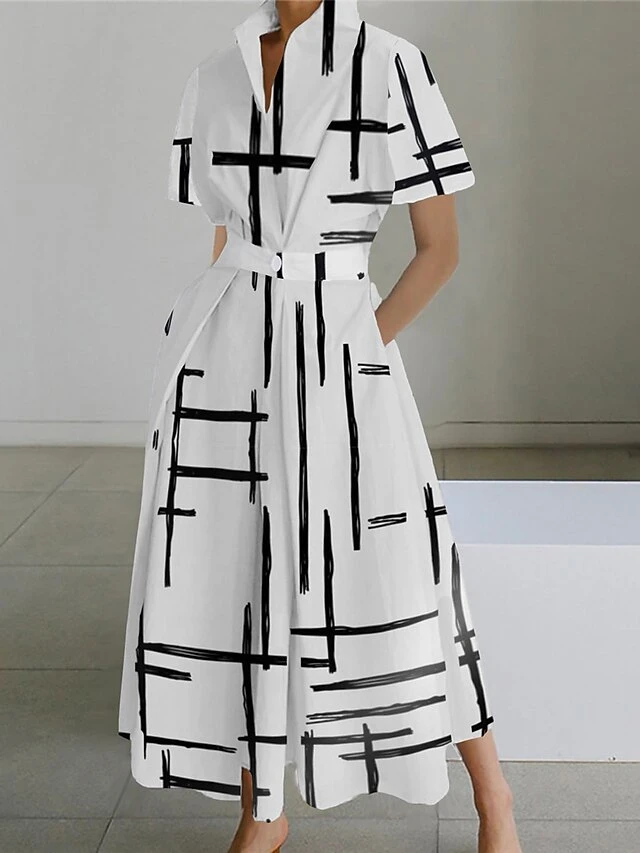 Women’s Shirt Dress Casual Dress Swing Dress Maxi Long Dress Outdoor Office Daily Polyester Fashion Modern Shirt Collar Button Pocket Short Sleeve Summer Spring 2023 Loose Fit Black White Pink
