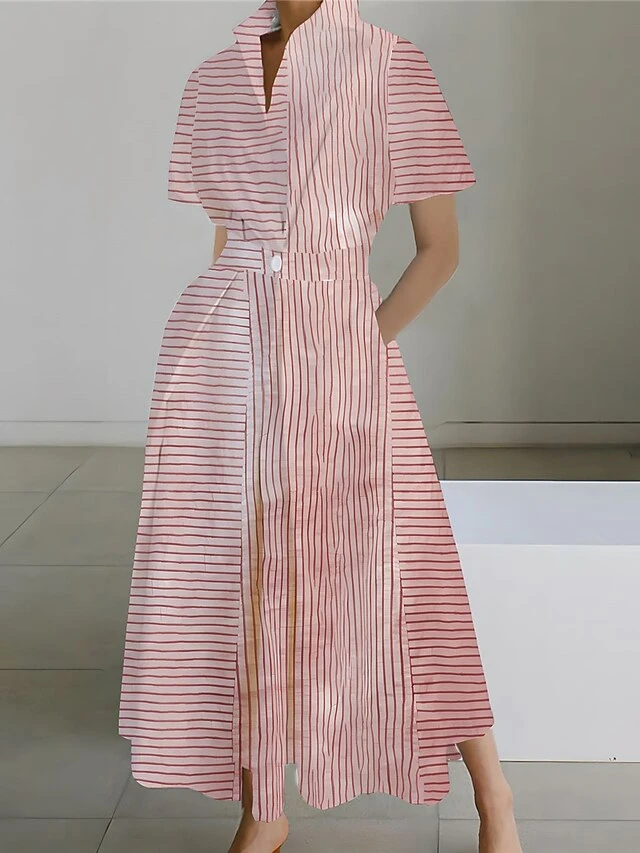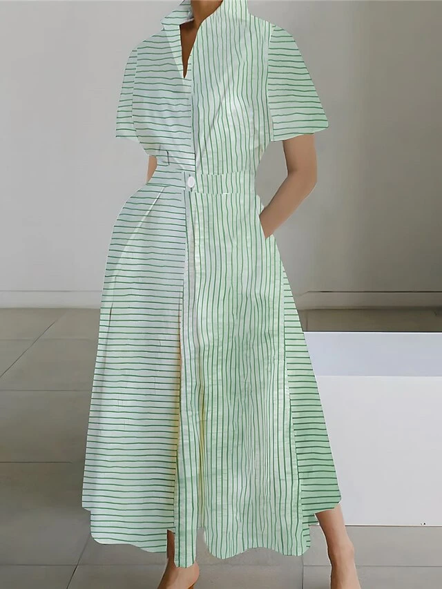 Women’s Shirt Dress Casual Dress Swing Dress Maxi Long Dress Outdoor Office Daily Polyester Fashion Modern Shirt Collar Button Pocket Short Sleeve Summer Spring 2023 Loose Fit Pink Blue Green Striped