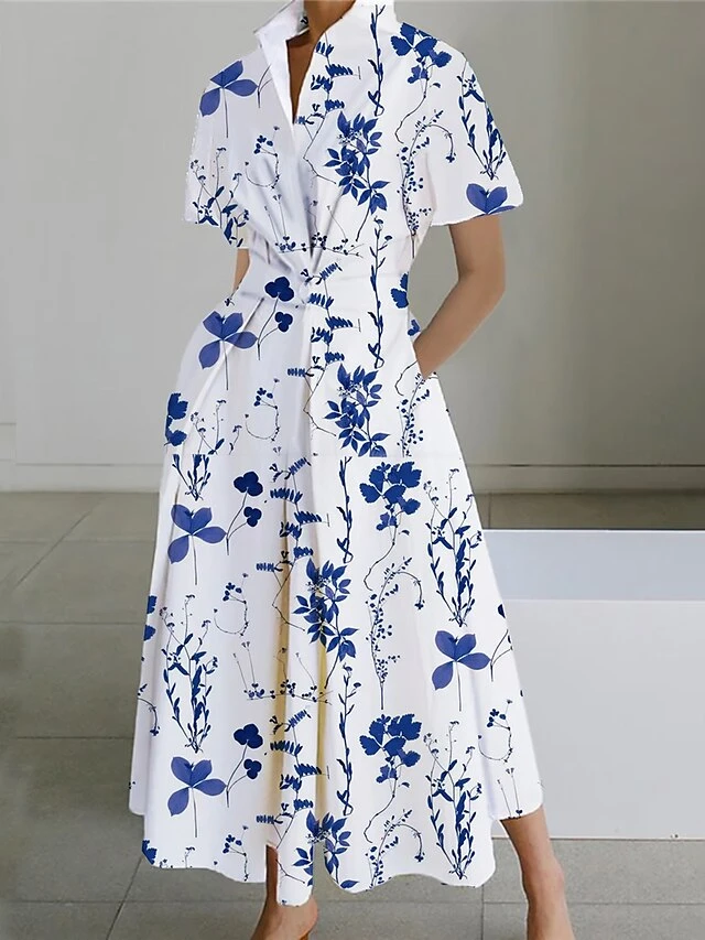 Women’s Shirt Dress Casual Dress Swing Dress Maxi Long Dress Outdoor Office Daily Polyester Fashion Modern Shirt Collar Button Pocket Short Sleeve Summer Spring 2023 Loose Fit White Pink Navy Blue