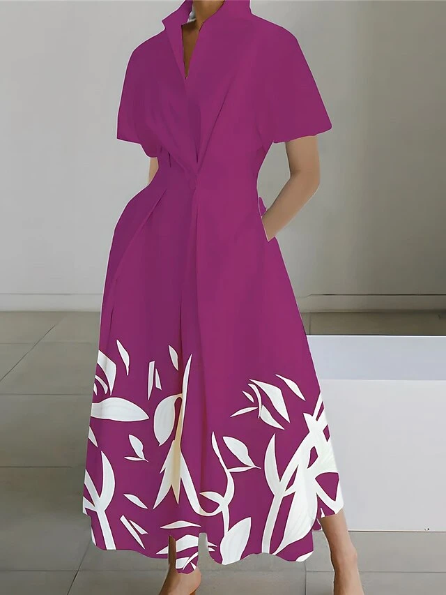 Women’s Shirt Dress Casual Dress Swing Dress Maxi Long Dress Outdoor Office Daily Polyester Fashion Modern Shirt Collar Button Pocket Short Sleeve Summer Spring 2023 Loose Fit Wine Navy Blue Blue Leaf