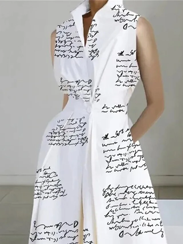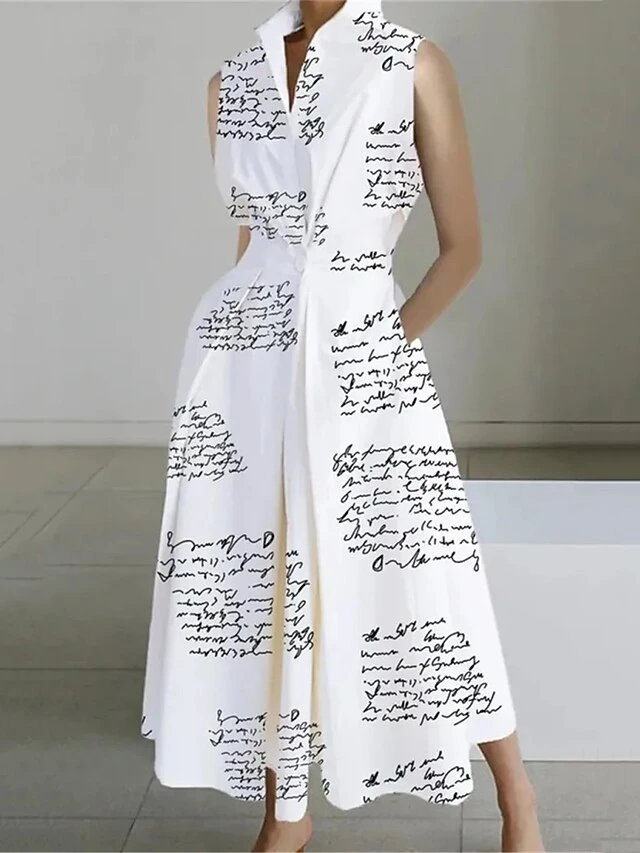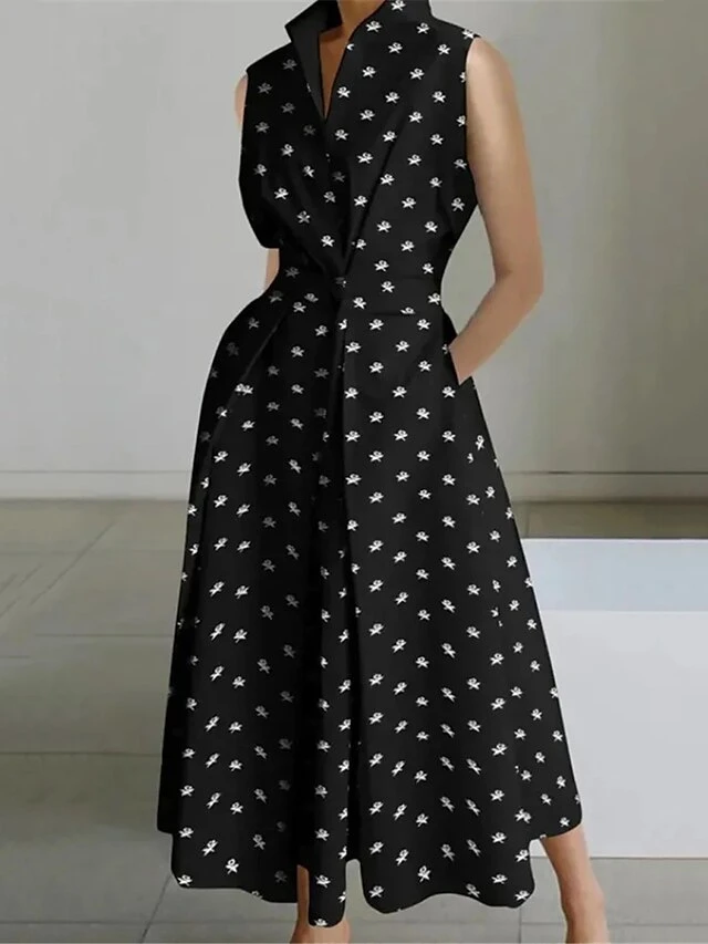 Women’s Shirt Dress Casual Dress Swing Dress Maxi Long Dress Outdoor Office Daily Polyester Fashion Modern Shirt Collar Button Pocket Sleeveless Summer Spring 2023 Loose Fit Black White Polka Dot
