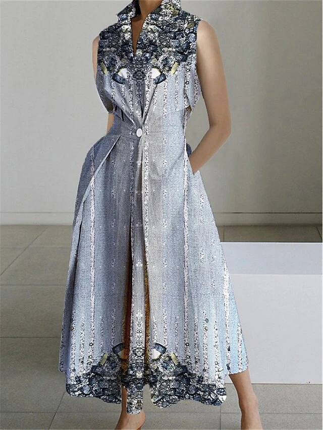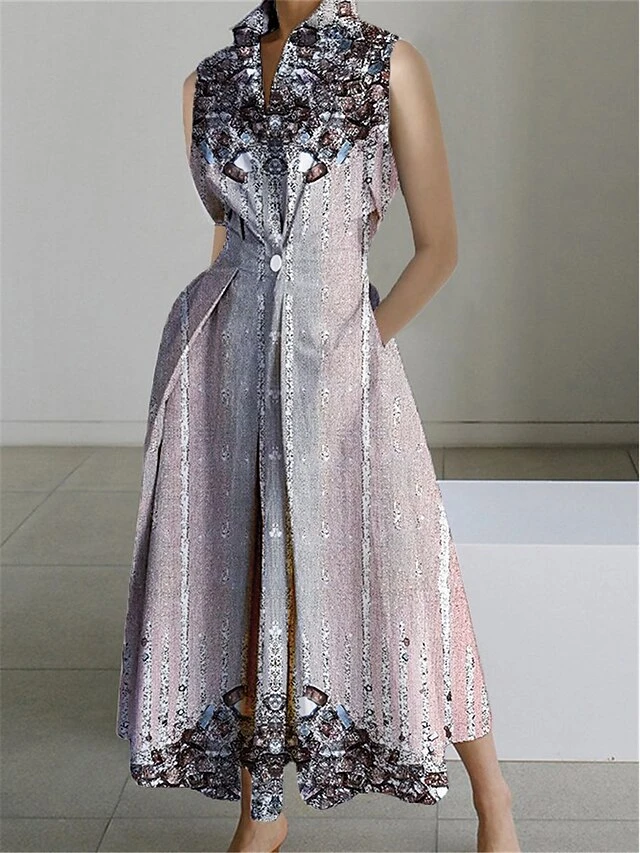 Women’s Shirt Dress Casual Dress Swing Dress Maxi Long Dress Outdoor Office Daily Polyester Fashion Modern Shirt Collar Button Pocket Sleeveless Summer Spring 2023 Loose Fit Pink Blue Purple Color