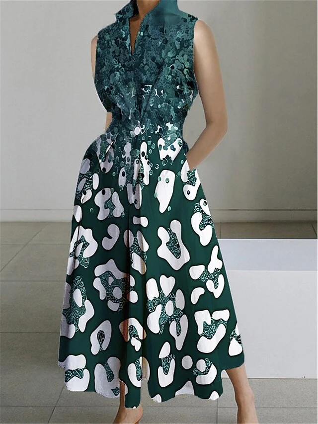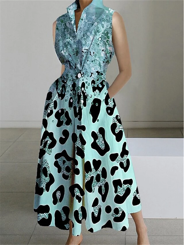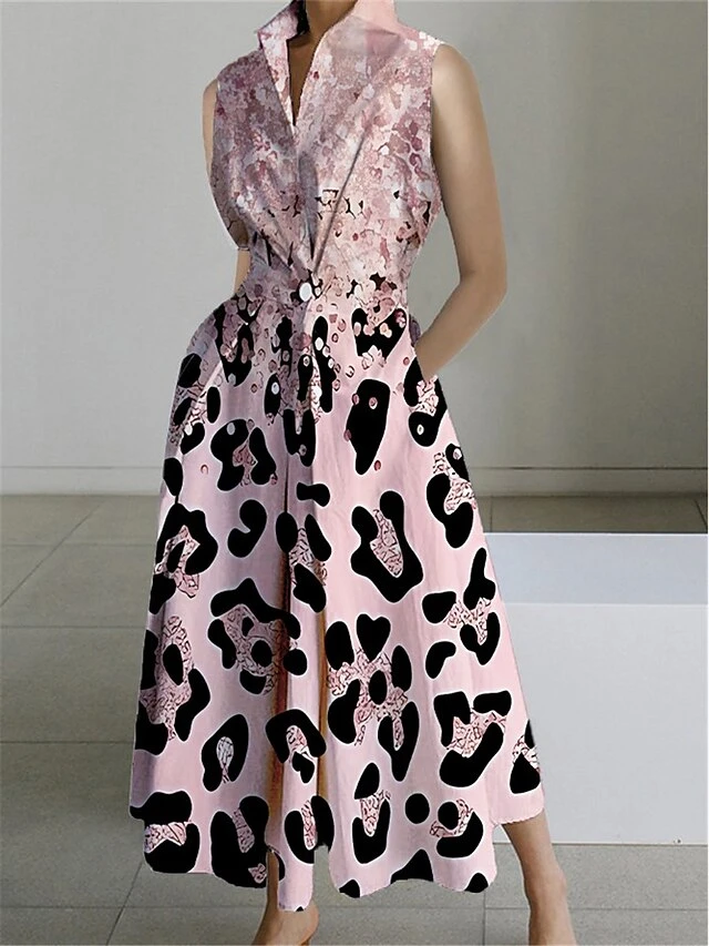 Women’s Shirt Dress Casual Dress Swing Dress Maxi Long Dress Outdoor Office Daily Polyester Fashion Modern Shirt Collar Button Pocket Sleeveless Summer Spring 2023 Loose Fit Pink Navy Blue Blue