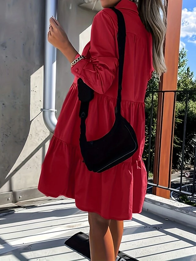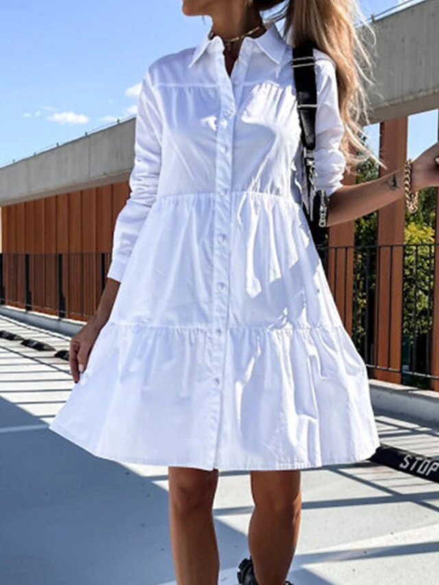 Women’s Shirt Dress Casual Dress Swing Dress Midi Dress Outdoor Daily Vacation Cotton Basic Modern Shirt Collar Ruffle Button Long Sleeve Fall Winter 2023 Regular Fit ArmyGreen Black White Pure Color