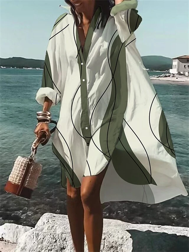 Women’s Shirt Dress Casual Dress Swing Dress Midi Dress Outdoor Daily Vacation Polyester Classic Casual Shirt Collar Button Long Sleeve Summer Spring Fall 2023 Loose Fit ArmyGreen Black Navy Blue