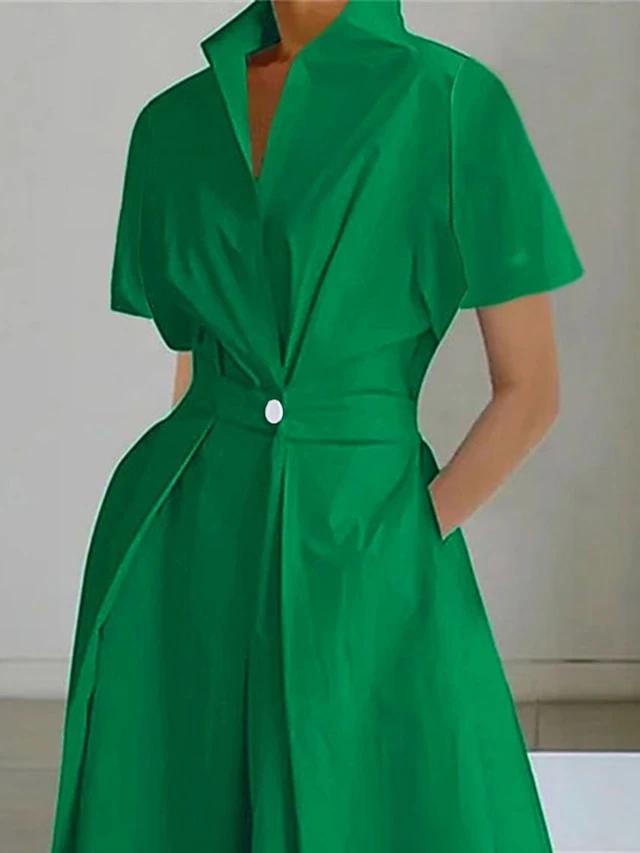 Women’s Shirt Dress Casual Dress Swing Dress Midi Dress Outdoor Daily Vacation Polyester Fashion Modern Split Neck Button Pocket Short Sleeve Summer Spring 2023 Regular Fit White Green Plain S M L XL