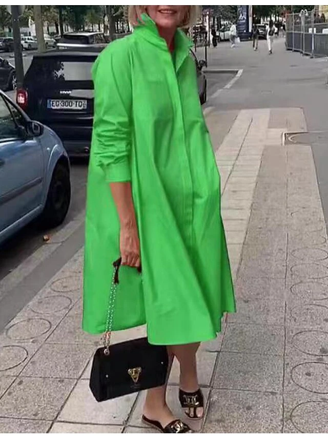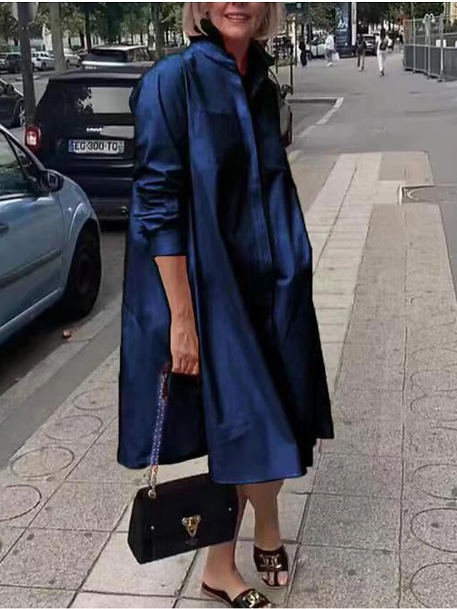 Women’s Shirt Dress Midi Dress Daily Polyester Fashion Elegant Shirt Collar Pocket Long Sleeve Summer Spring Fall 2023 Loose Fit Pink Royal Blue Green Plain Pure Color S M L XL 2XL