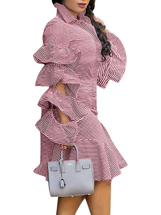 Women’s Shirt Dress Sheath Dress Midi Dress Winter Dress Daily Vacation Polyester Cotton Blend Fashion Casual Shirt Collar Lace Up Ruched Long Sleeve Summer Spring Fall 2022 Regular Fit Red Light Blue